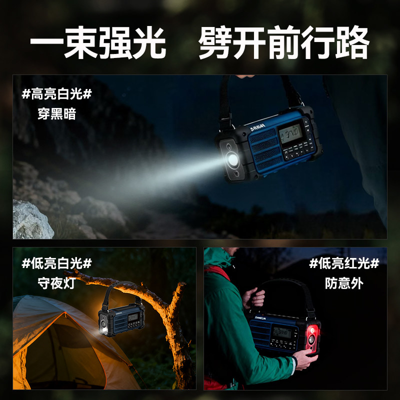天猫山进探险家便携式手摇发电太阳能应急收音机家庭防灾户外蓝牙音响