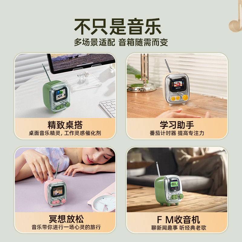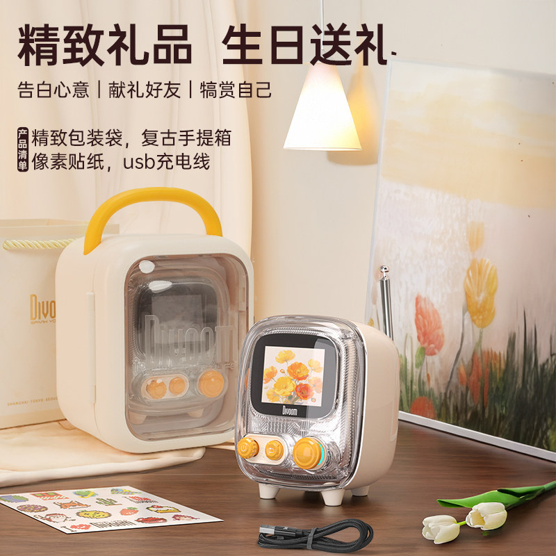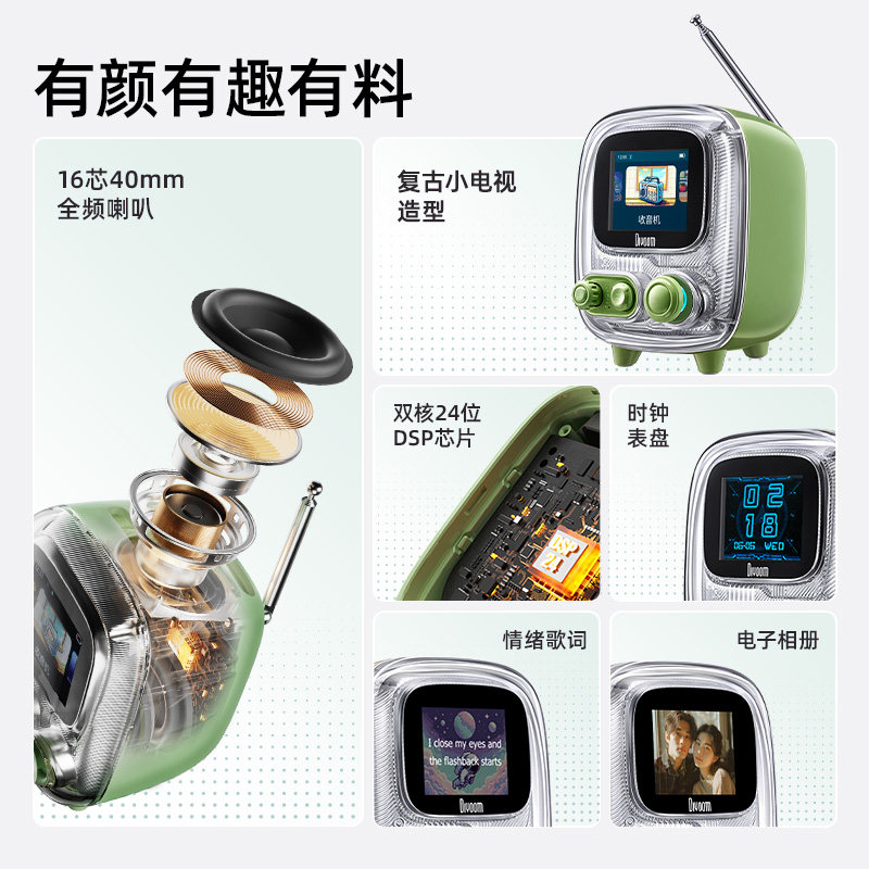 天猫Divoom点音小电视Ⅱ无线蓝牙音箱桌面复古小型音响迷你收音机礼物