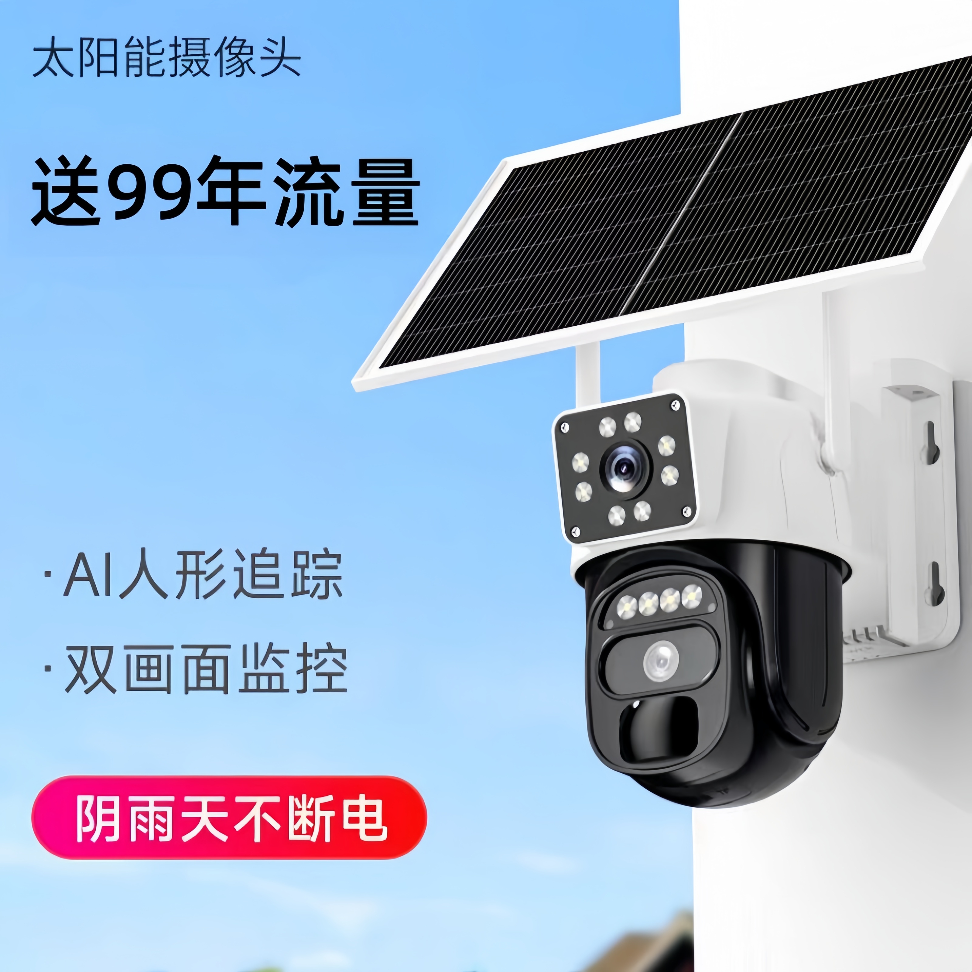 淘太阳能监控器摄像头360度无死角手机远程室外高清夜视4G无电无网