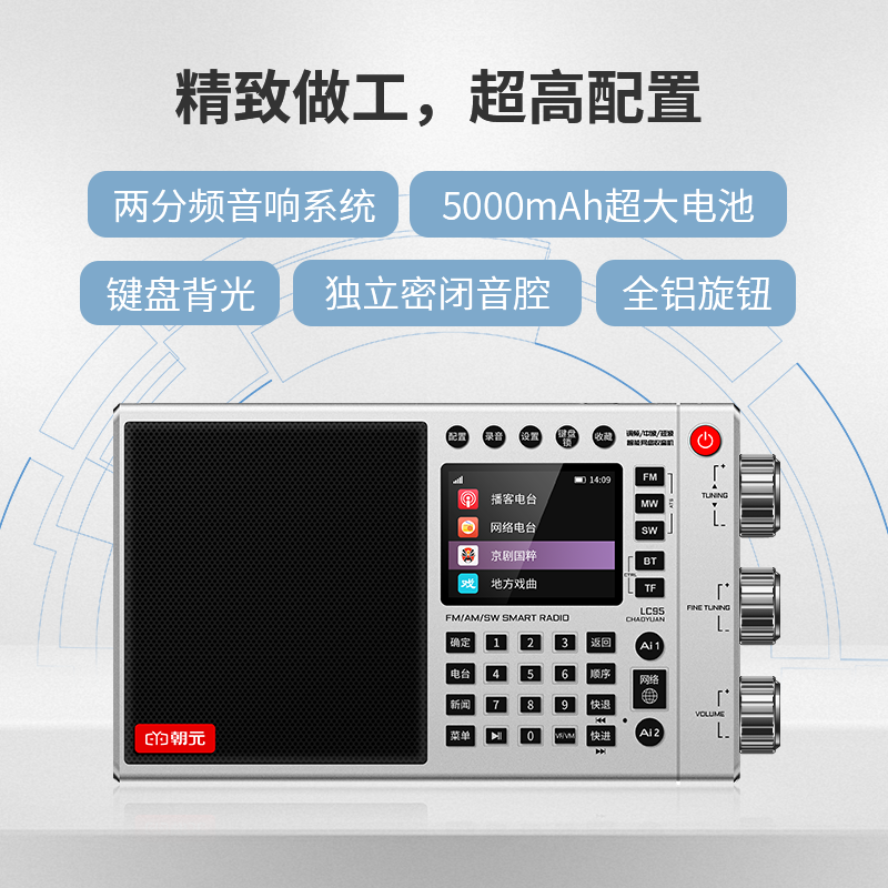 朝元LC95高端全波段网络收音机2025新款,集专业性能与便携设计于一体,支持FM/AM/SW全波段接收,并融合4G网络与WiFi双连接,实现全球电台实时在线收听。内置高保真立体声扬声器与降噪芯片,音质清晰饱满,适合家用、户外及旅行使用。配备高清触控屏与智能语音助手,操作便捷,支持蓝牙、AUX及USB多种播放模式。大容量锂电池保障长时间续航,搭配人体工学设计,轻巧易携。无论是经典广播爱好者,还是追求高品质音频体验的用户,LC95都能满足多样化需求,是2025年智能收音设备的优选之作。