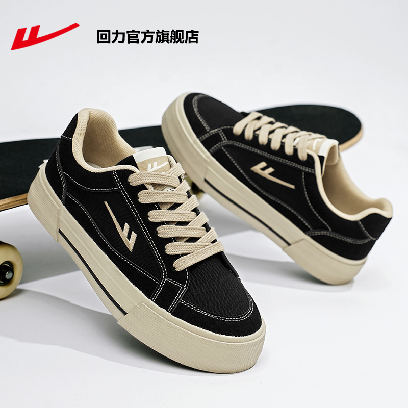 天猫回力官方旗舰店黑色帆布鞋女鞋2025春季新款百搭复古厚底板鞋男款
