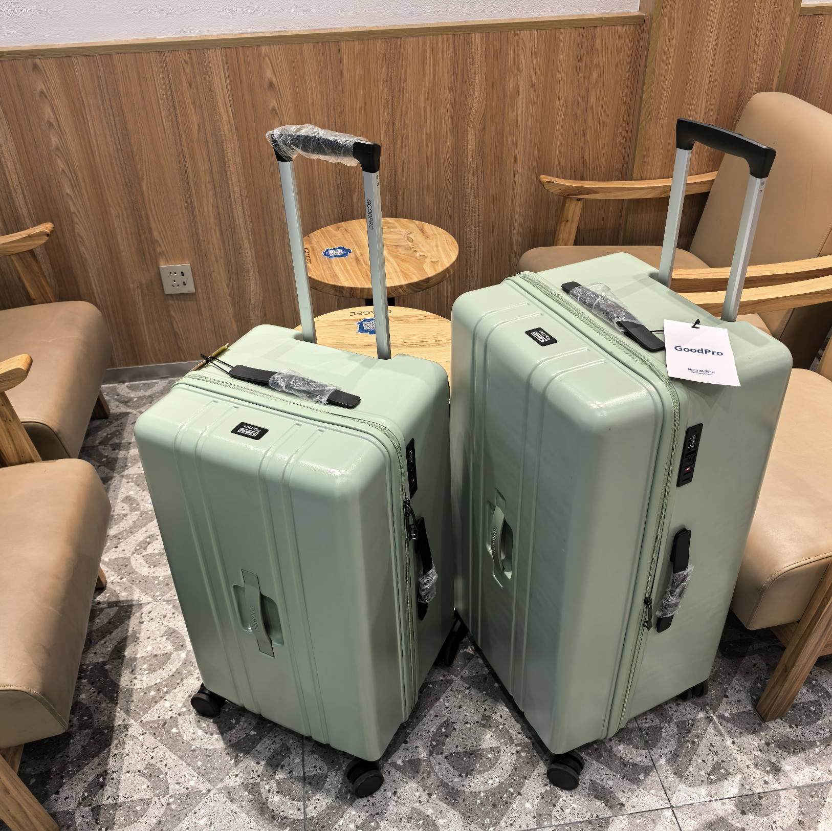 GoodPro纯PC拉杆箱是一款专为出行设计的高品质旅行箱,采用100%德国进口PC材质,轻盈坚韧,抗冲击性强,有效保护箱内物品。配备360°静音万向轮,顺滑耐磨,推行安静省力,尤其适合机场、车站等长距离移动。28寸大容量设计,满足学生、商旅人士长途出行需求,内部科学分区,收纳井然有序。符合人体工学的铝合金拉杆,多档调节,稳固耐用。产品通过严格质检,出口日本市场,品质值得信赖。简约时尚外观,兼顾实用与美观,是旅行、留学、出差的理想伴侣。GoodPro,让每一次出行都轻松自在。