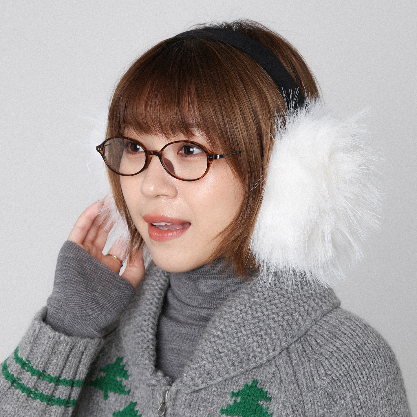 白色兔毛感大号长毛绒骑车保暖折叠耳捂防冻护耳冬季耳罩女耳套包