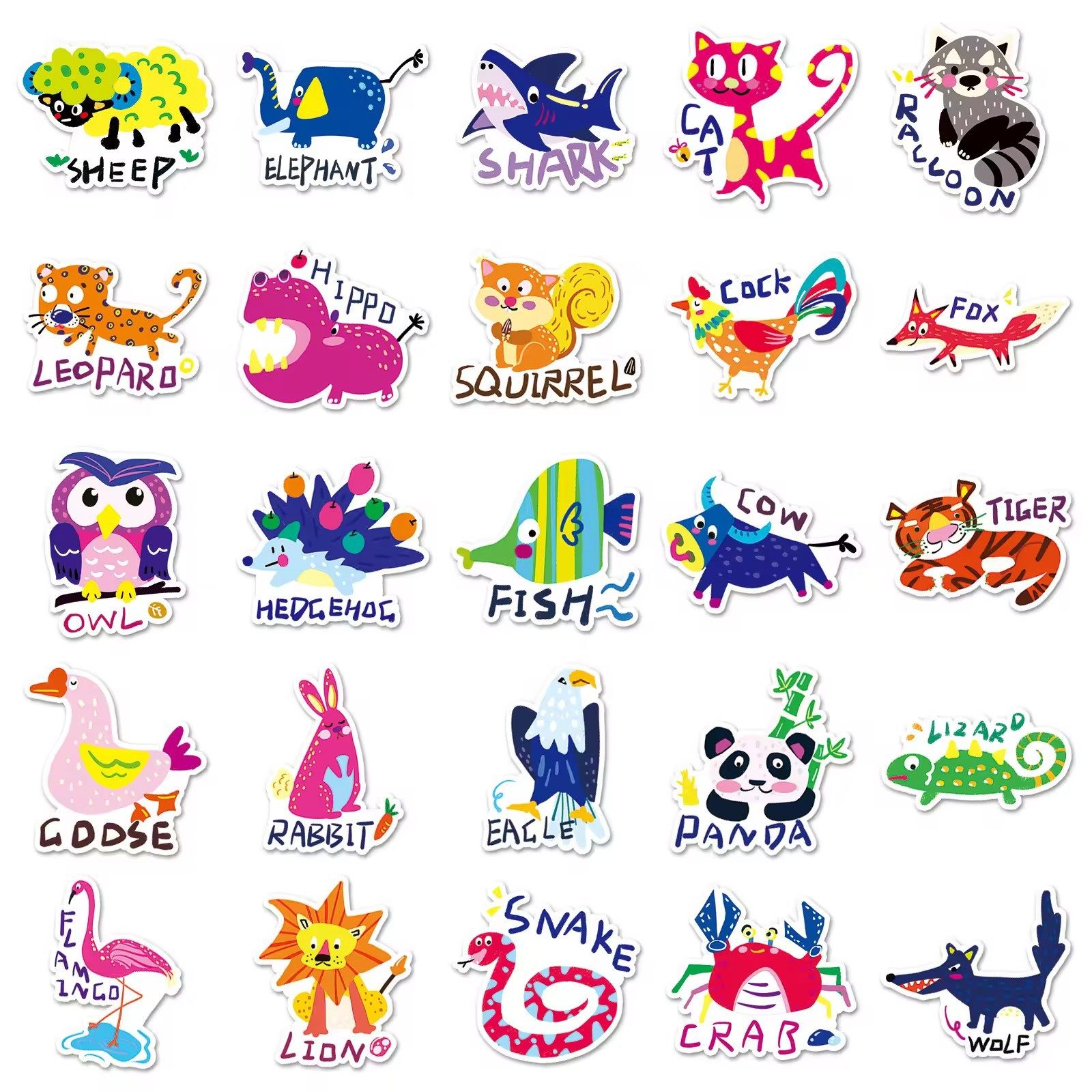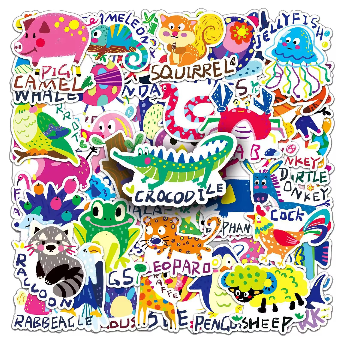 天猫50张彩色动物英语字母贴纸儿童启蒙趣味图案记忆单词创意个性装饰手账笔记本电脑手机壳文具防水贴纸不留胶