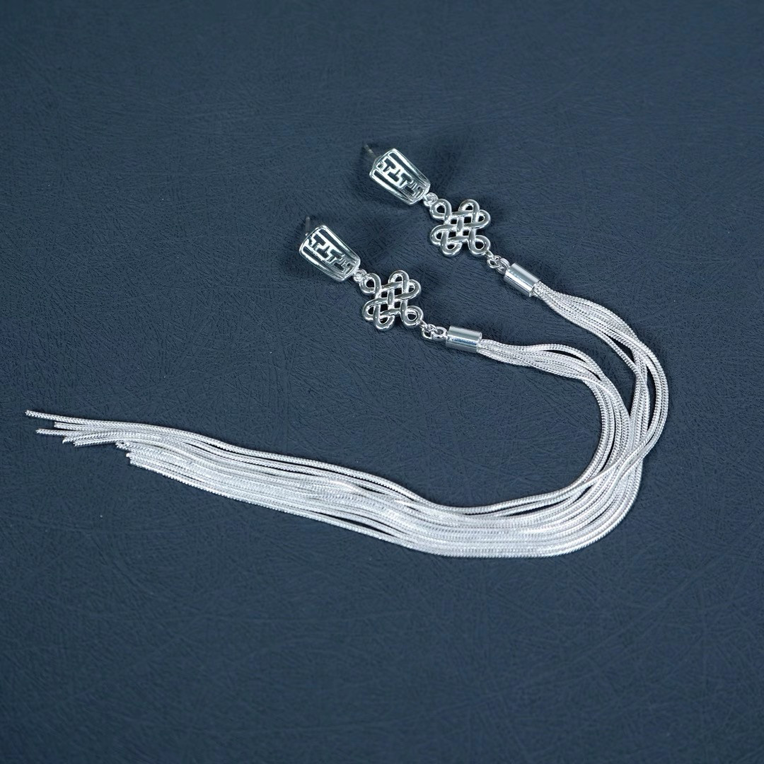 淘宝新吉祥结蒙古民族风耳钉百搭气质国风纯手工个性长流苏耳饰耳针