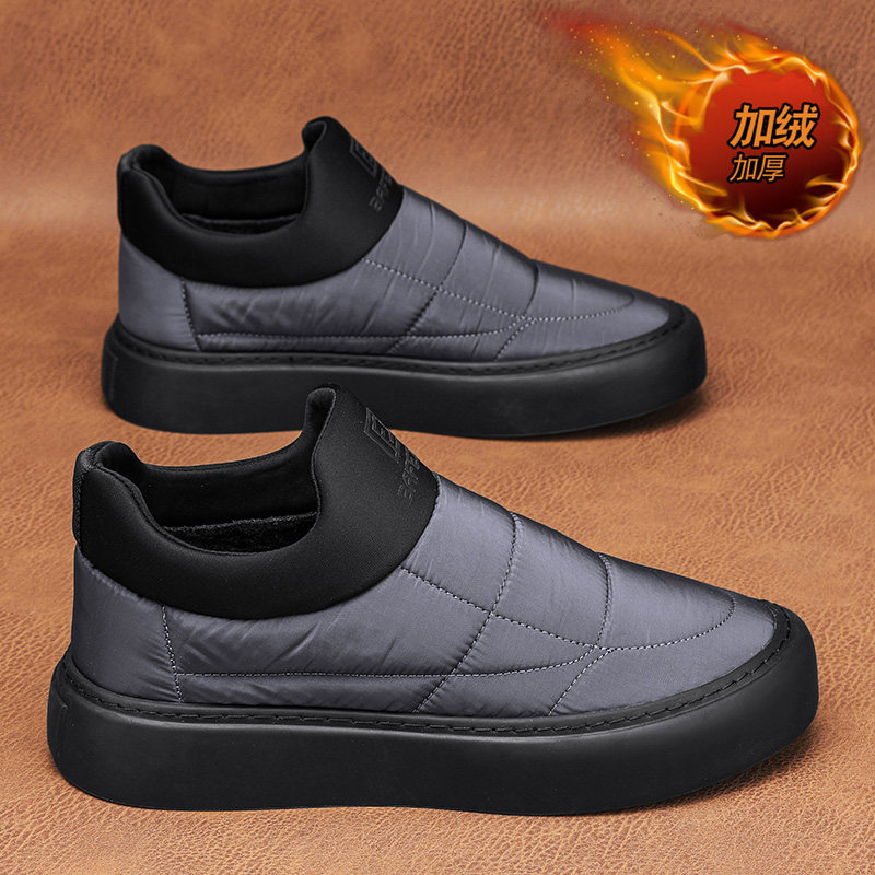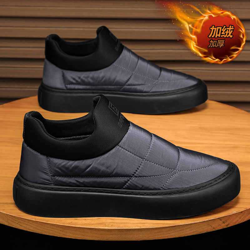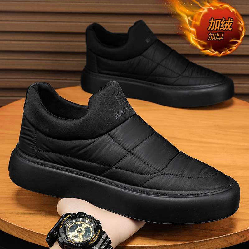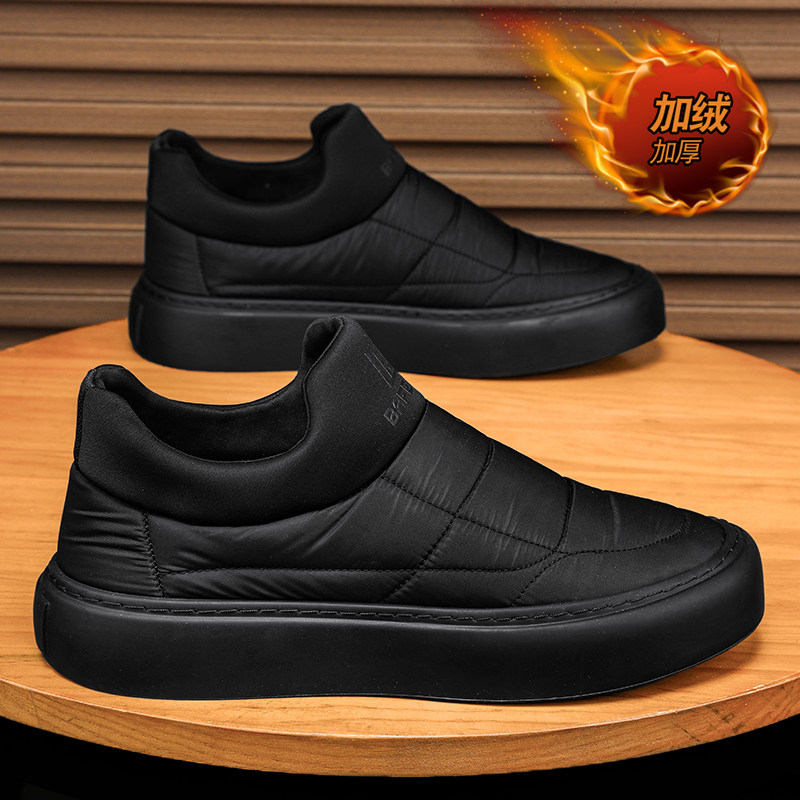 天猫男鞋冬季2025新款一脚蹬加绒保暖棉鞋黑色防水工作羽绒东北雪地靴