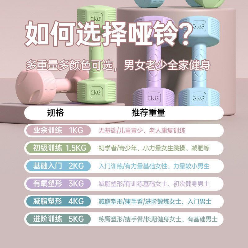 天猫哑铃女士健身家用器材瑜伽儿童青少年杠壶铃1/2/3kg一对男小哑铃