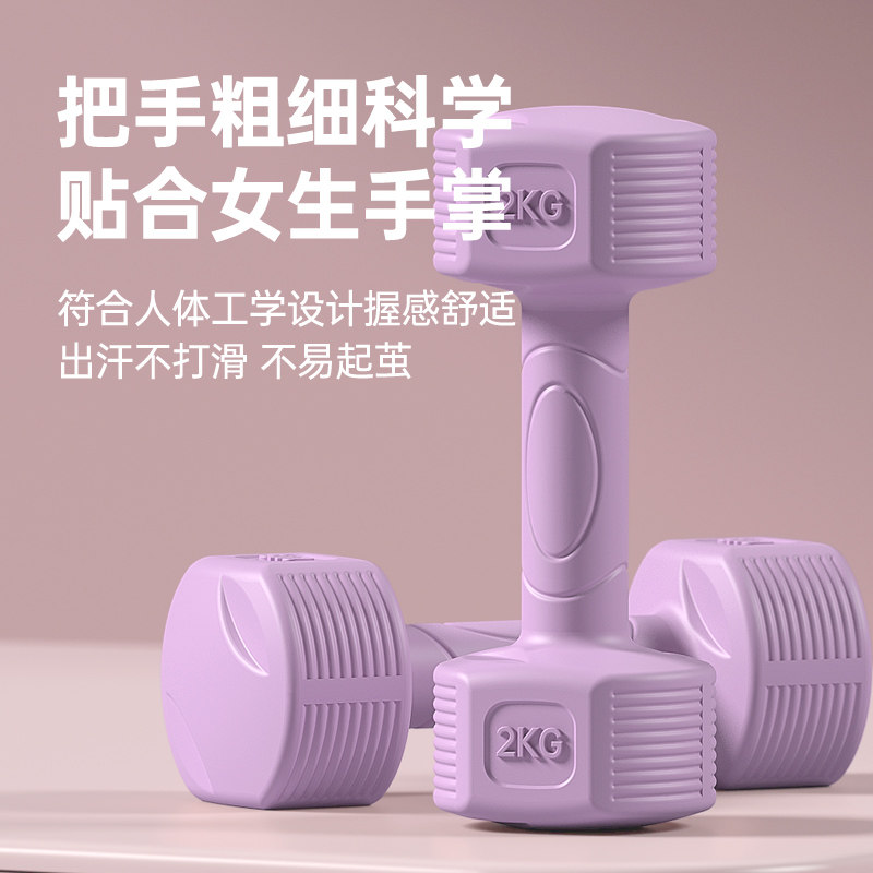 品健哑铃女士健身家用器材青少年哑铃2kg一对实心铸铁男士小哑铃