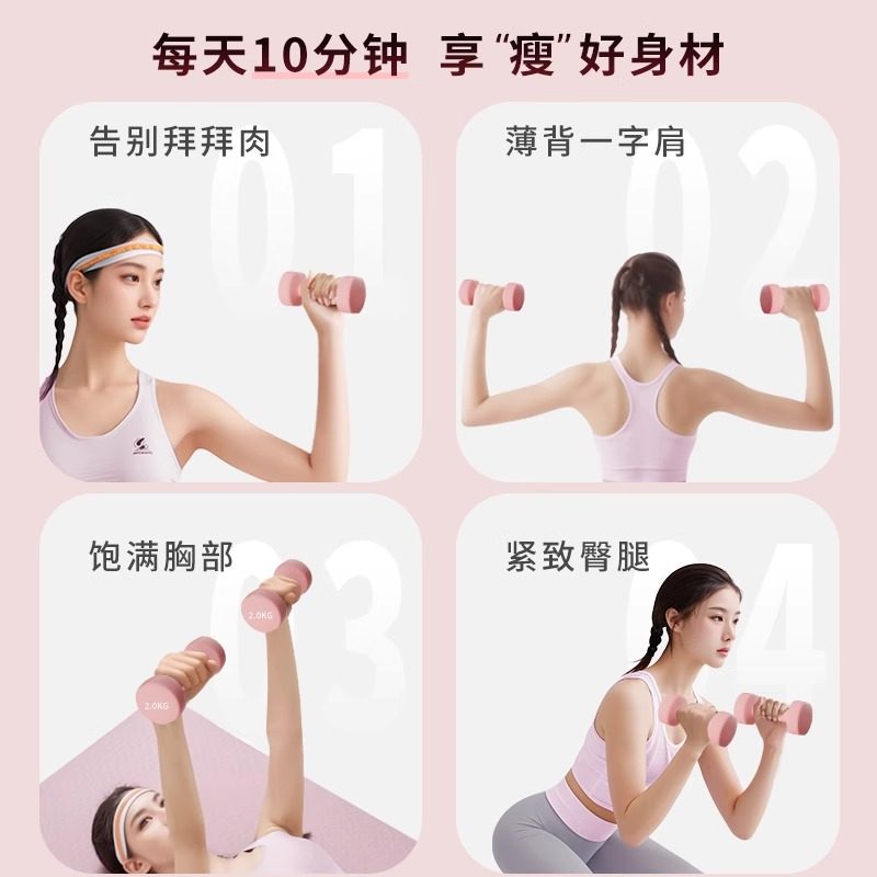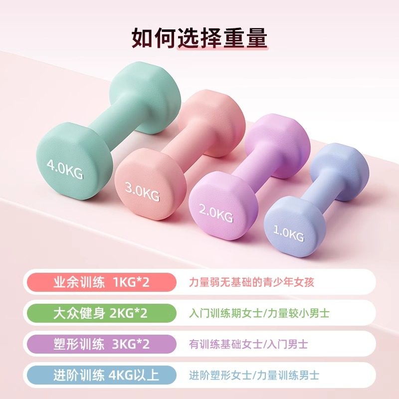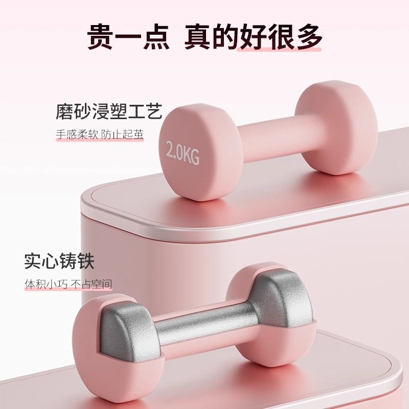 品健哑铃女士健身家用器材青少年哑铃2kg一对实心铸铁男士小哑铃