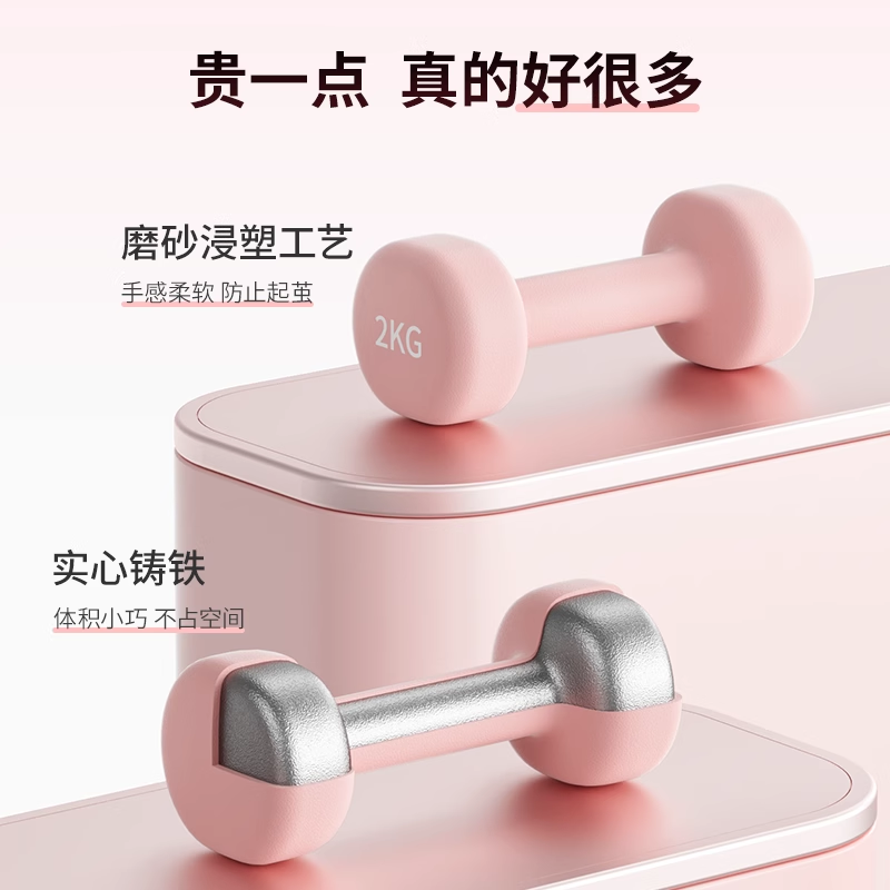 天猫哑铃女士健身家用运动器材训练浸塑实心纯铸铁杠铃小哑玲2kg一对