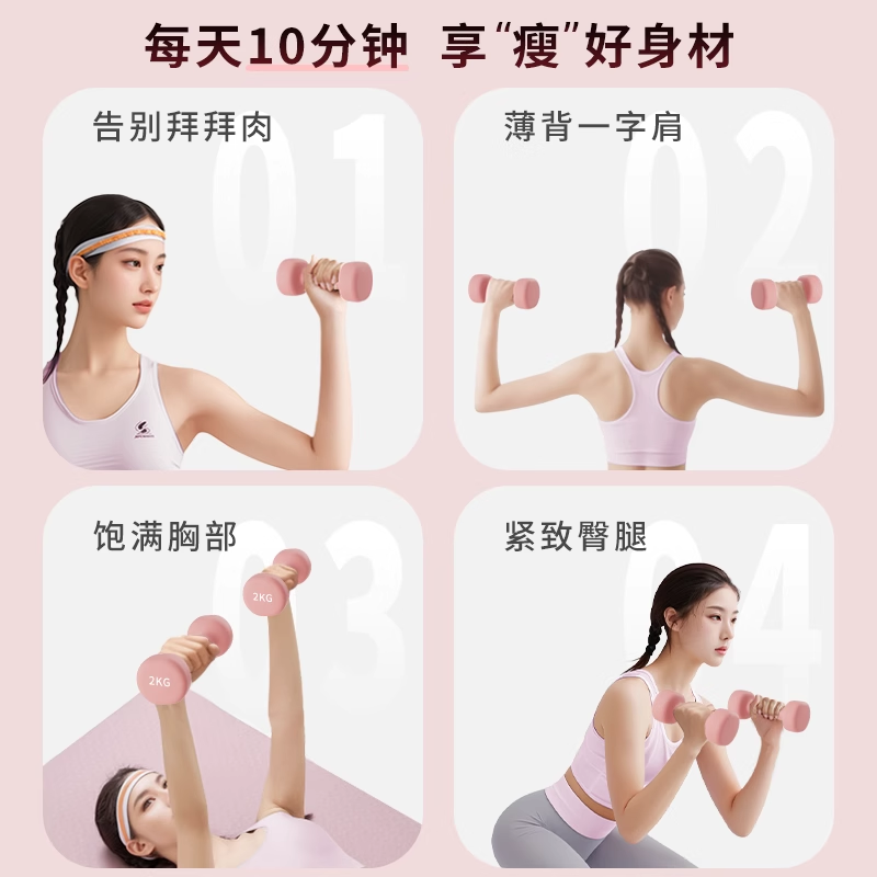 这款哑铃女士健身家用运动器材,专为女性设计,适合居家力量训练与塑形。采用实心纯铸铁材质,结构坚固耐用,外层经环保浸塑工艺处理,防滑耐磨,握感舒适,有效保护地板与器械表面。每只哑铃重2kg,一对共4kg,重量适中,特别适合初学者、女性及康复训练者进行上肢、肩背、手臂等部位的精准锻炼。小巧轻便,易于收纳,可搭配瑜伽垫、弹力带等使用,满足多样化训练需求。无论是塑形、增肌还是提升体能,这款浸塑实心哑铃都是居家健身的理想选择,助您轻松开启科学健身之旅。