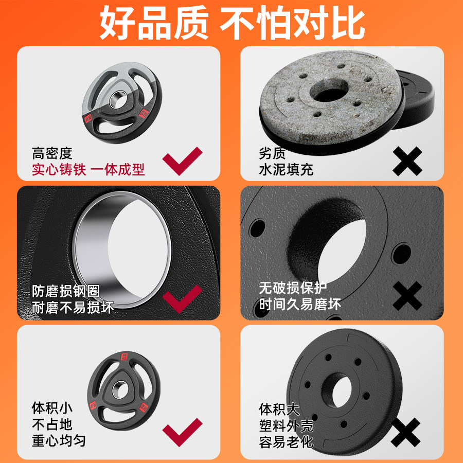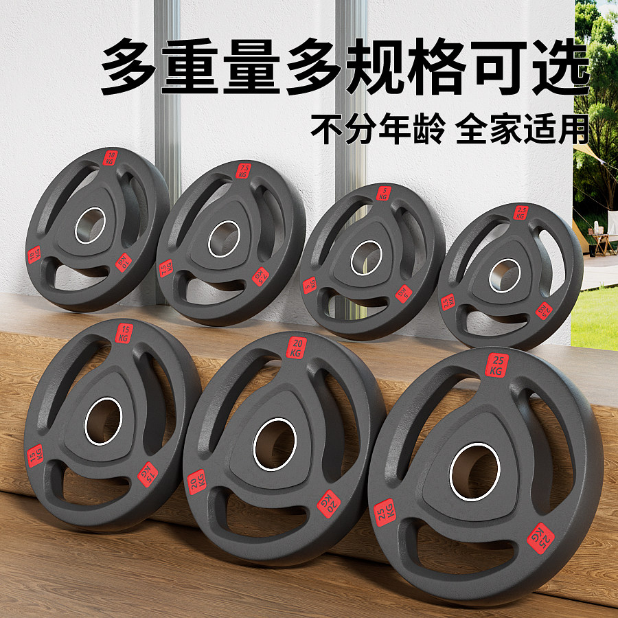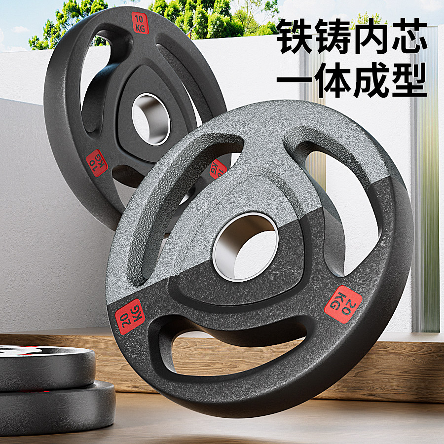 天猫纯铸铁质杠铃片哑铃片金属包铁飞轮片包铁奥杆手抓大孔健身家用