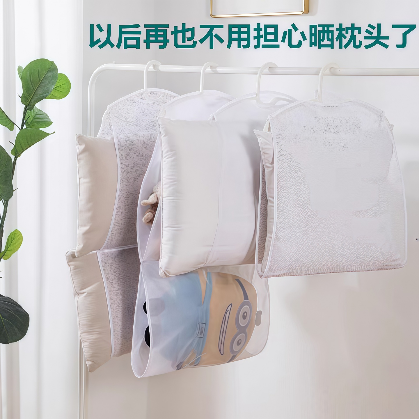 淘宝家用枕头晾晒器阳台防风晒衣架室外枕头晾晒网兜网袋抱枕娃娃架子