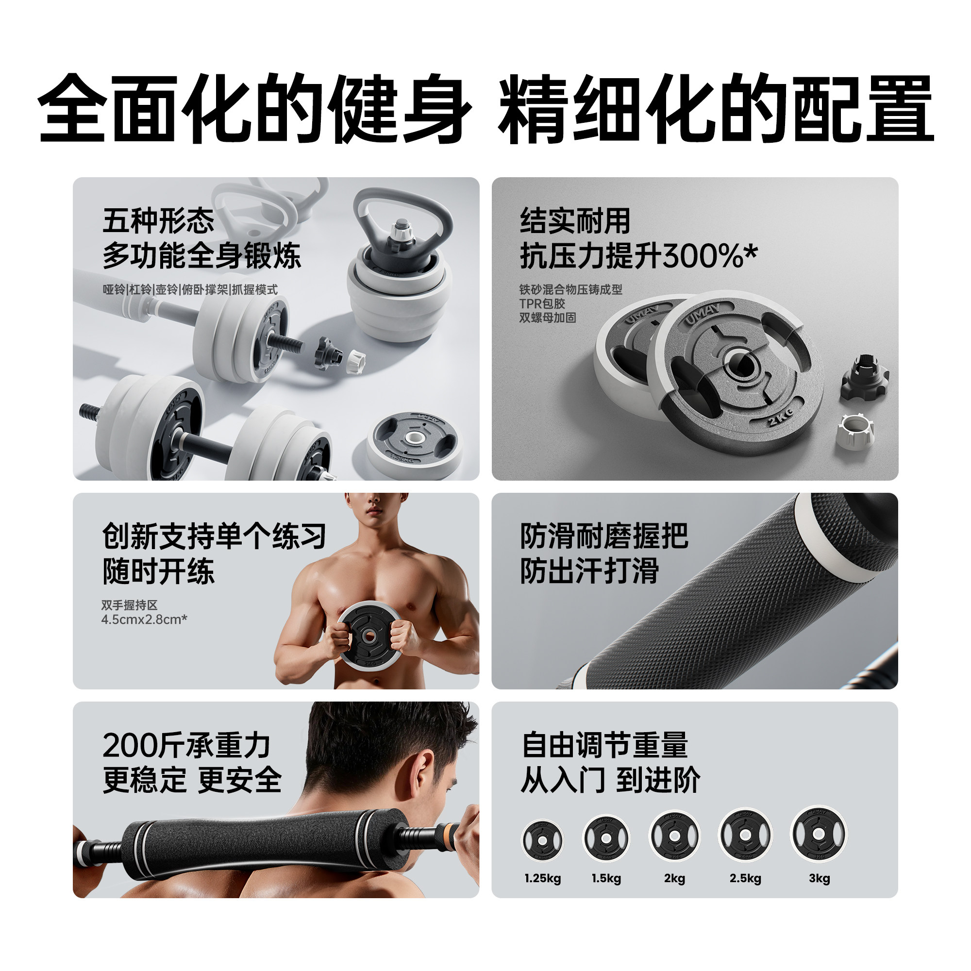 佑美哑铃是一款专为男士设计的家用健身锻炼器材,集哑铃、杠铃、壶铃功能于一体,满足不同训练需求。采用可调节重量设计,用户可根据自身能力自由增减配重片,轻松实现从初级到高阶的强度进阶。结构稳固,握感舒适,配备安全锁扣,确保训练安全。体积小巧,收纳便捷,特别适合宿舍、家庭等空间有限的环境使用。无论是力量训练、塑形增肌还是体能提升,佑美哑铃都能提供高效支持。一套多用,节省空间与成本,是居家健身的理想选择,助力男士打造强健体魄。