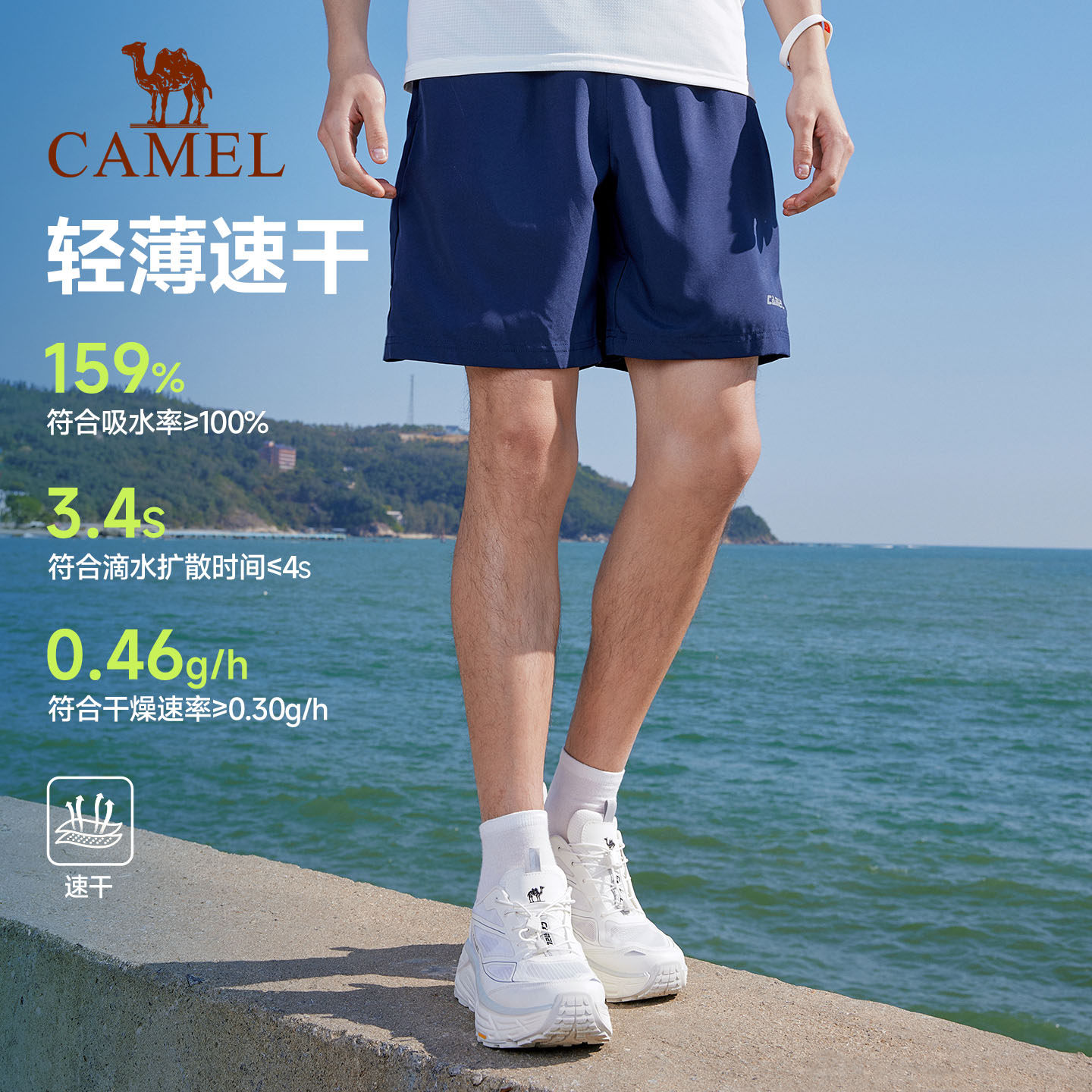 天猫骆驼速干运动短裤男士宽松薄款透气户外爸爸休闲裤梭织夏季凉感裤