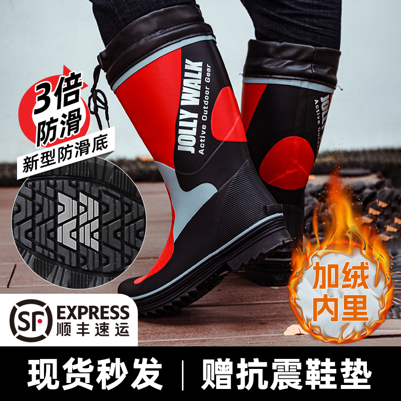 雨鞋男款成人高筒冬季加厚防滑保暖内套内胆可拆卸防水棉加绒雨靴