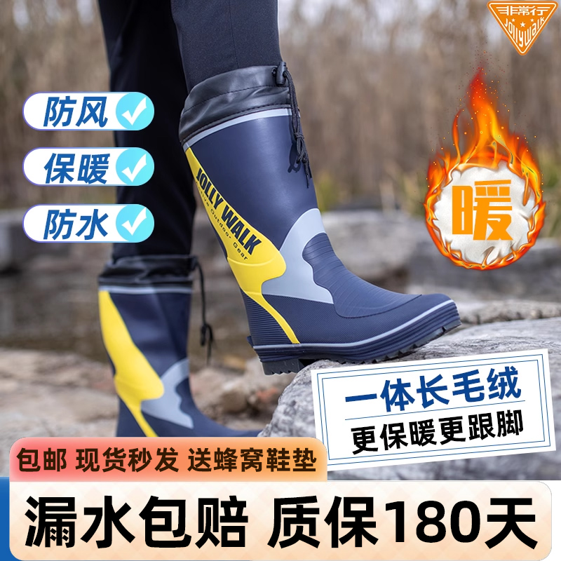 淘雨鞋男款成人高筒冬季加厚防滑保暖内套内胆可拆卸防水棉加绒雨靴
