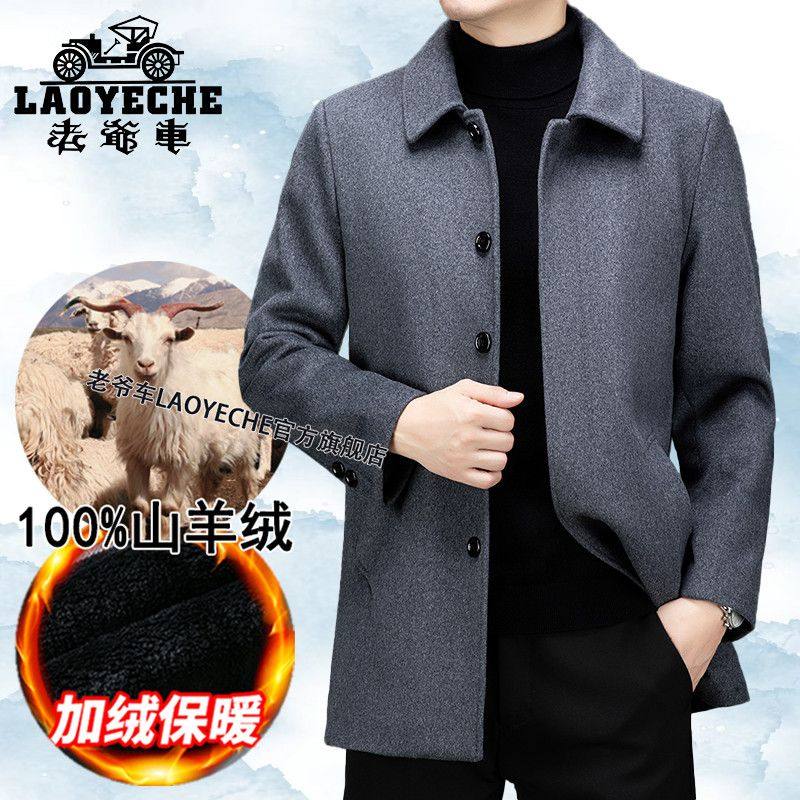 淘宝老爷车秋冬季男士纯羊绒大衣中长款爸爸装风衣中老年羊毛呢子外套