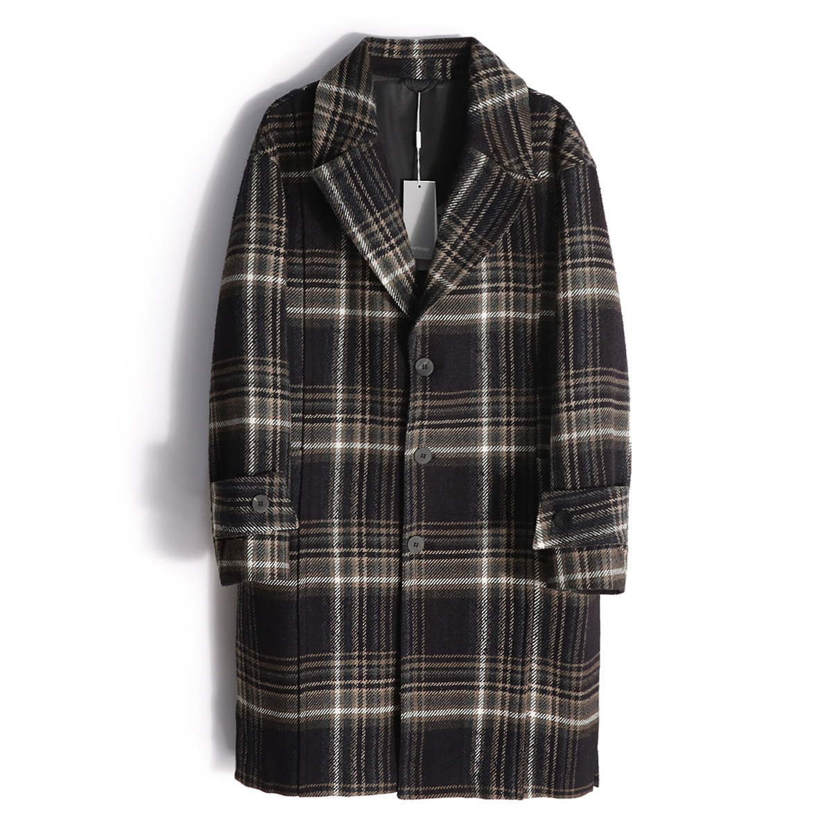 淘宝2025秋冬季新款男士商务休闲羊毛混纺格子中长款毛呢大衣外套1790