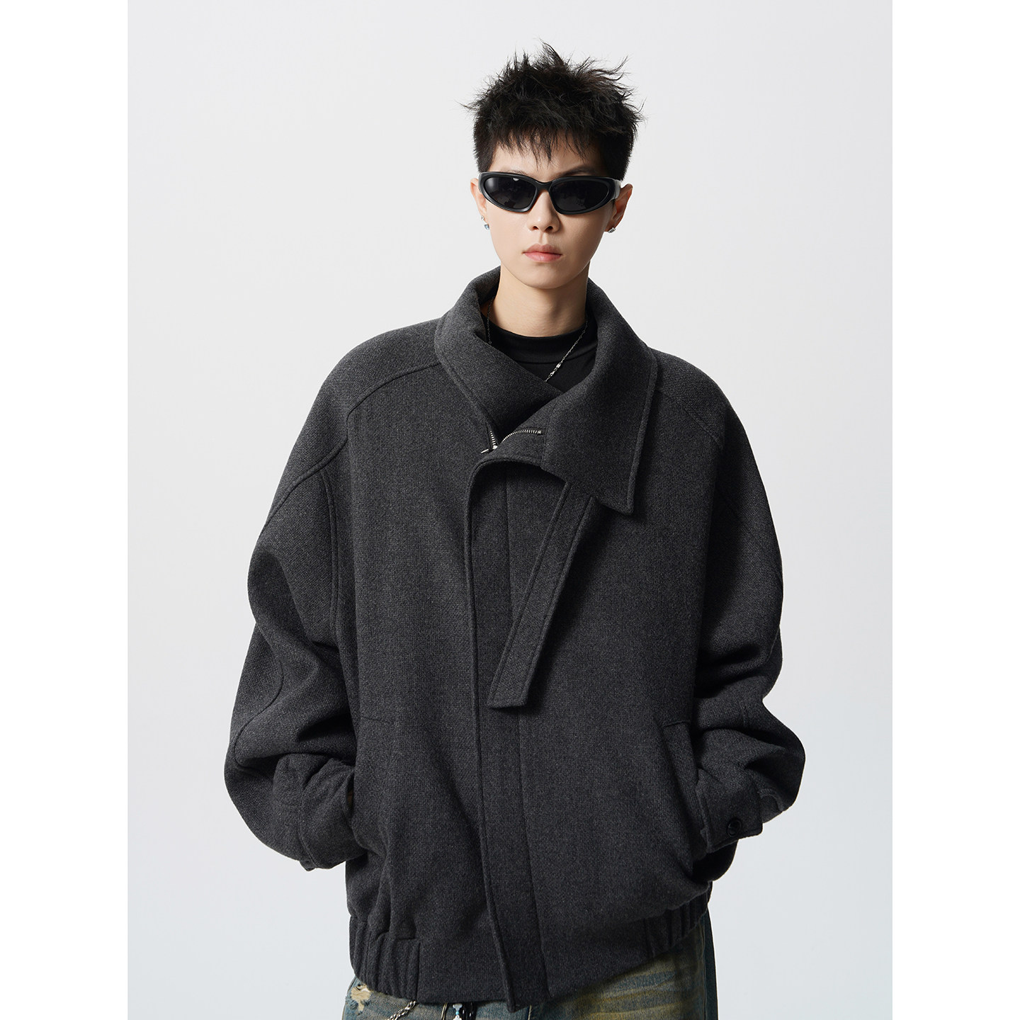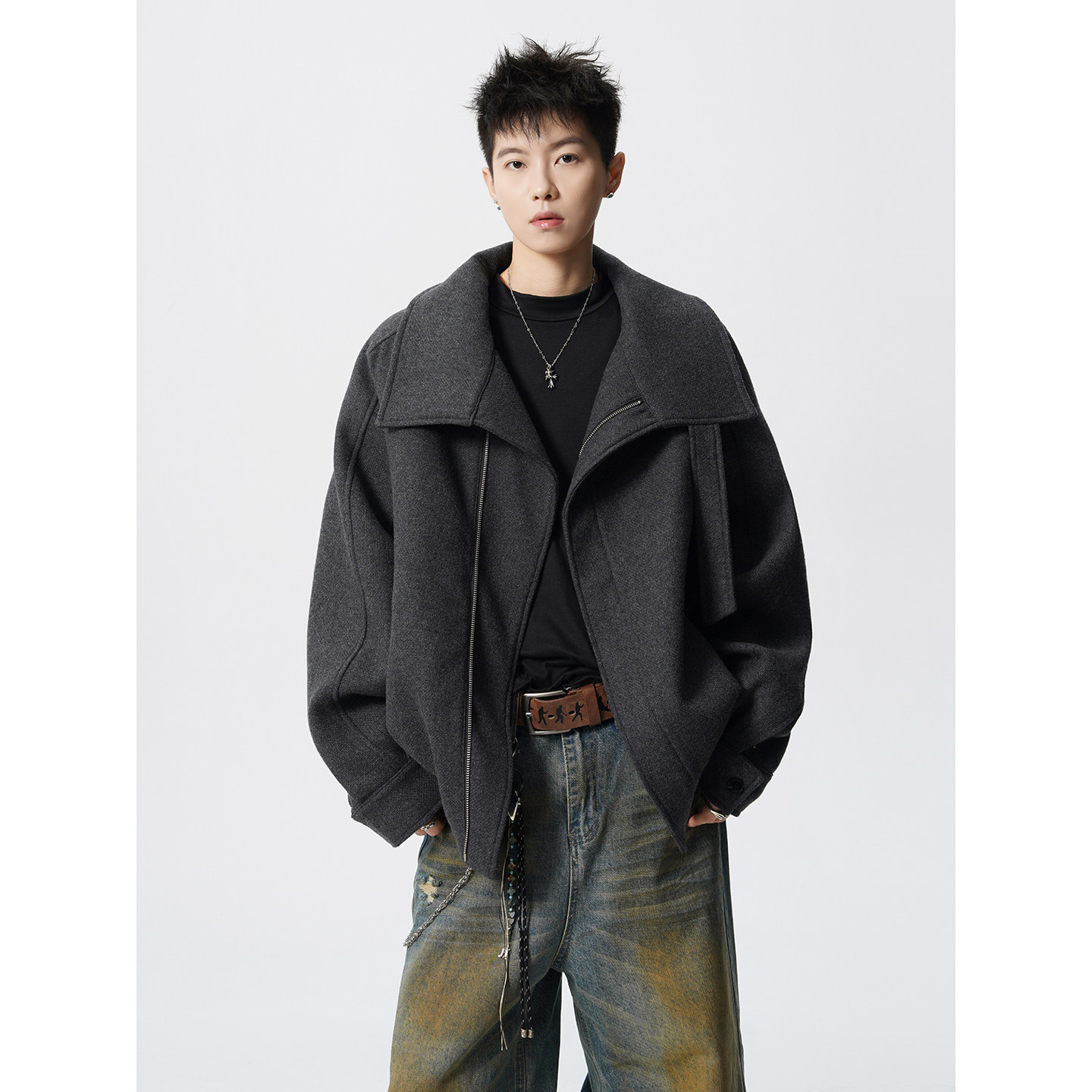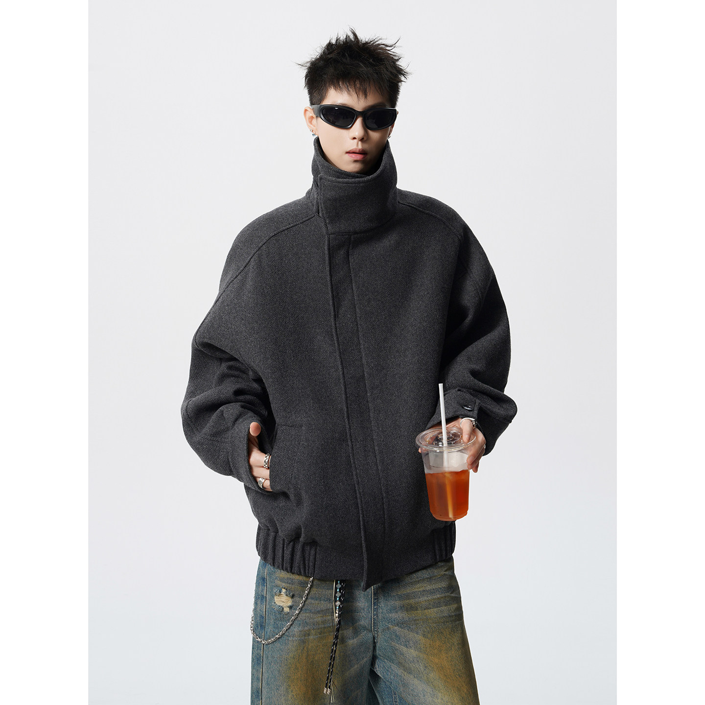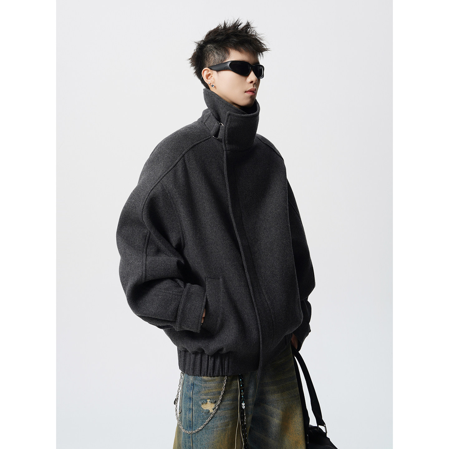 淘宝FOFWMODE 美式重磅纯色短款毛呢大衣外套男秋冬潮牌宽松保暖外套