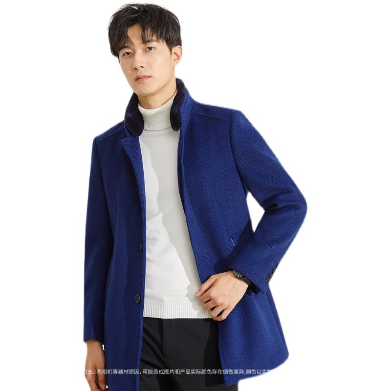 淘宝外贸羊毛大衣男品牌男装专柜正品外套秋冬季加棉兔毛领风衣外套
