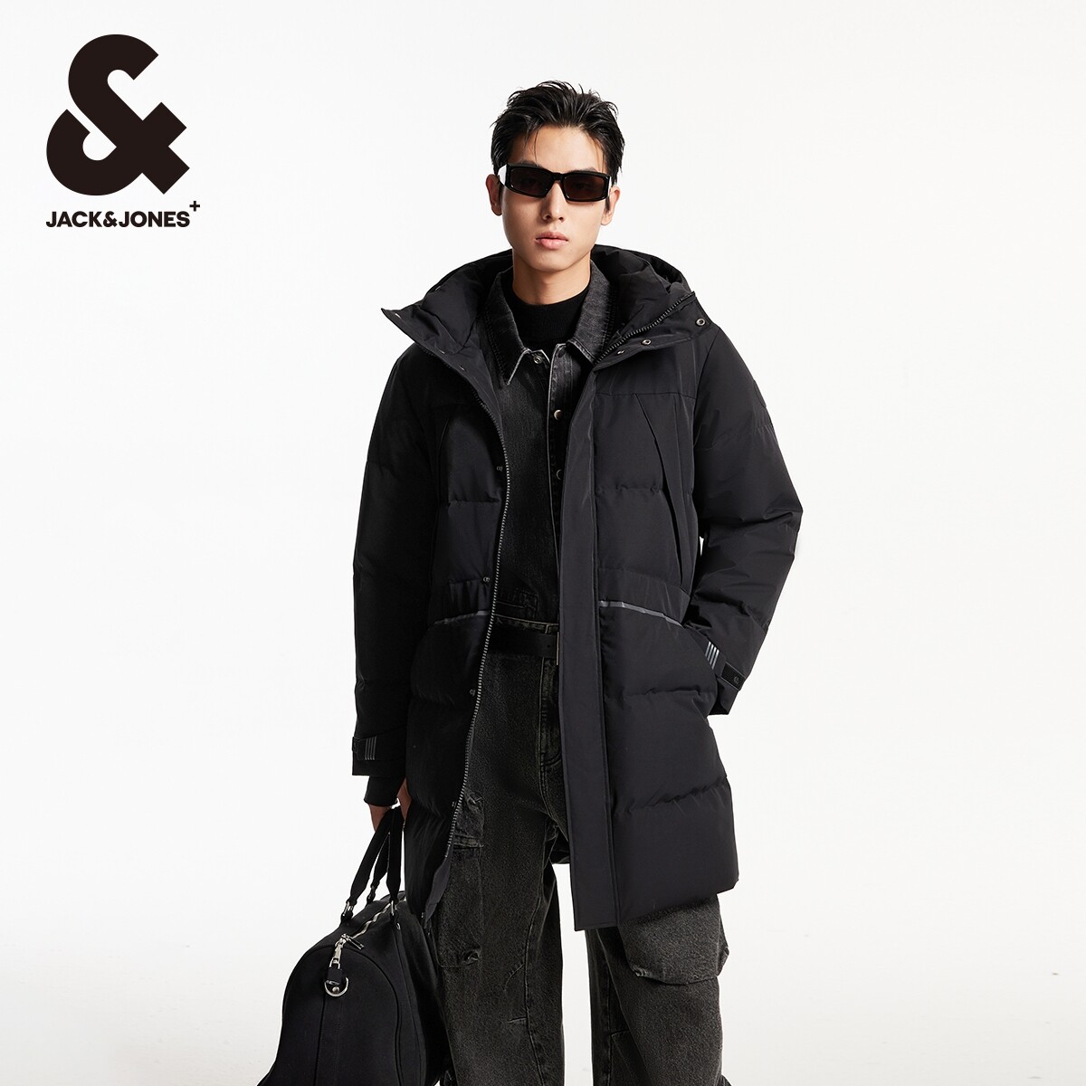 天猫杰克琼斯outlets冬季鸭绒连帽大衣防泼水中长款羽绒服男外套男装