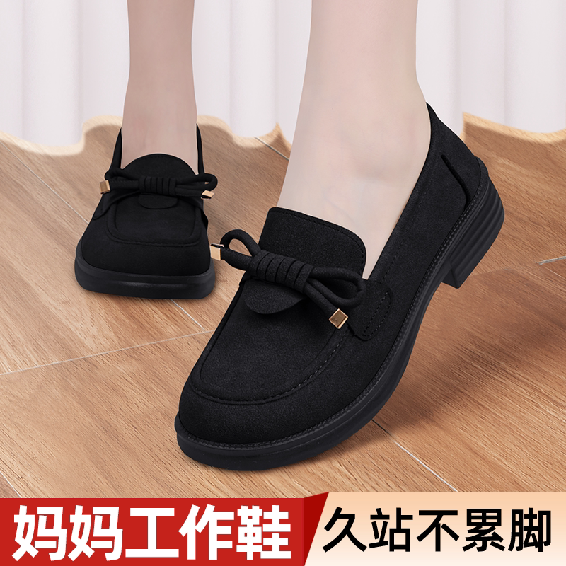 天大东黑色小皮鞋女2026新款春季一脚蹬女鞋通勤皮鞋平底英伦乐福鞋