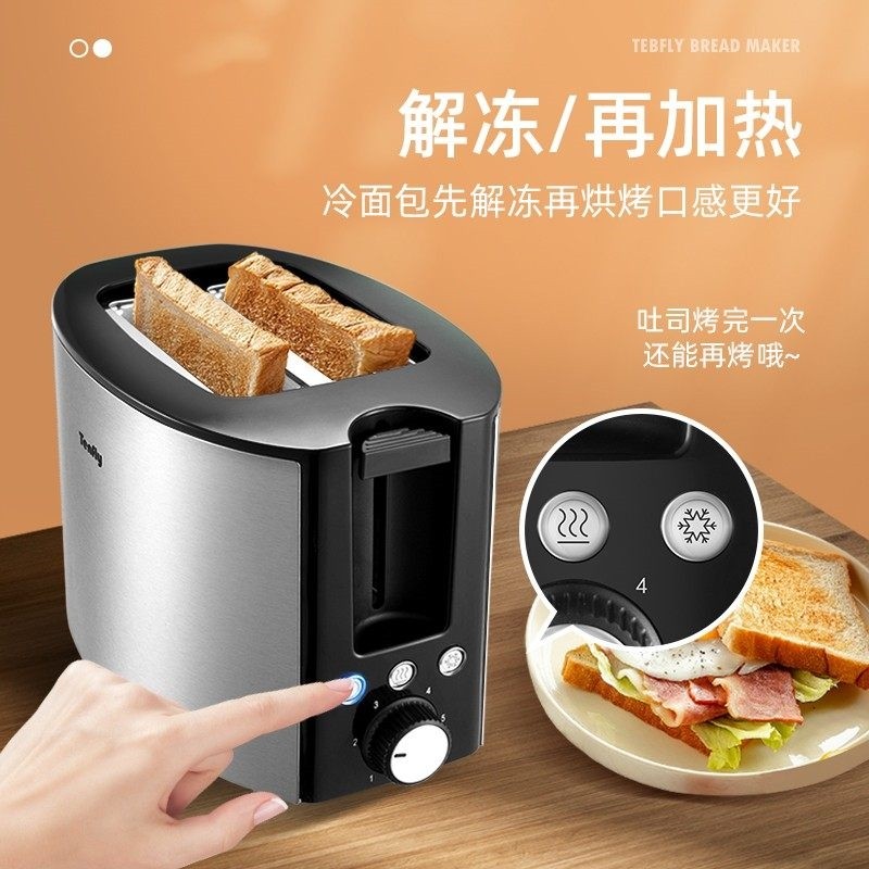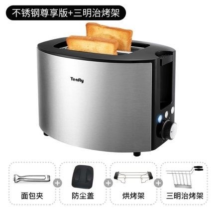 淘宝Tenfly烤面包机家用早餐小型吐司多士炉加热面包三明治不锈钢