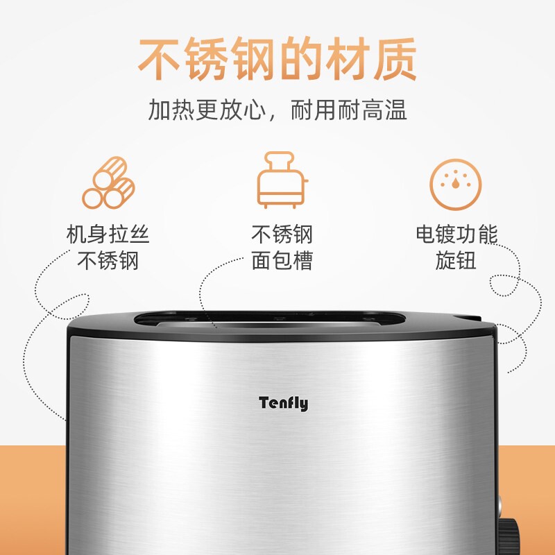 淘宝Tenfly不锈钢多士炉烤面包机家用机2片吐司机小型加热早餐