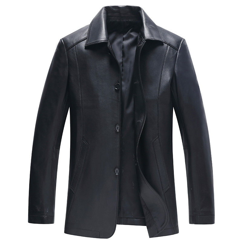 皮衣男中年秋冬装皮夹克外套中老年软皮加绒加厚爸爸装上衣