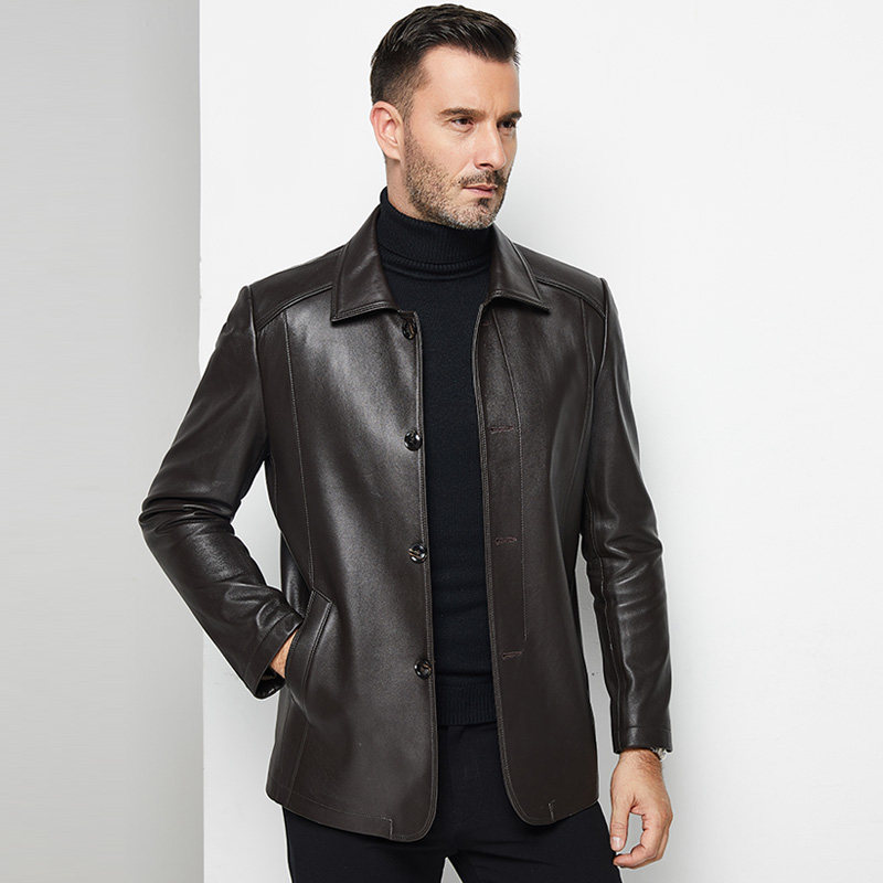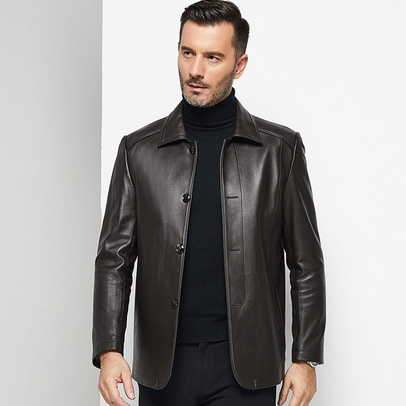 淘宝秋季海宁中老年男士外套真皮皮衣翻领绵羊皮大码加绒爸爸装皮夹克