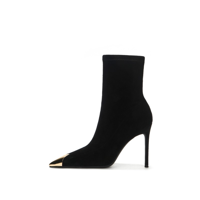 淘宝欧美2025秋冬季新款金属尖头高跟短靴细跟显瘦弹力靴百搭短筒女靴