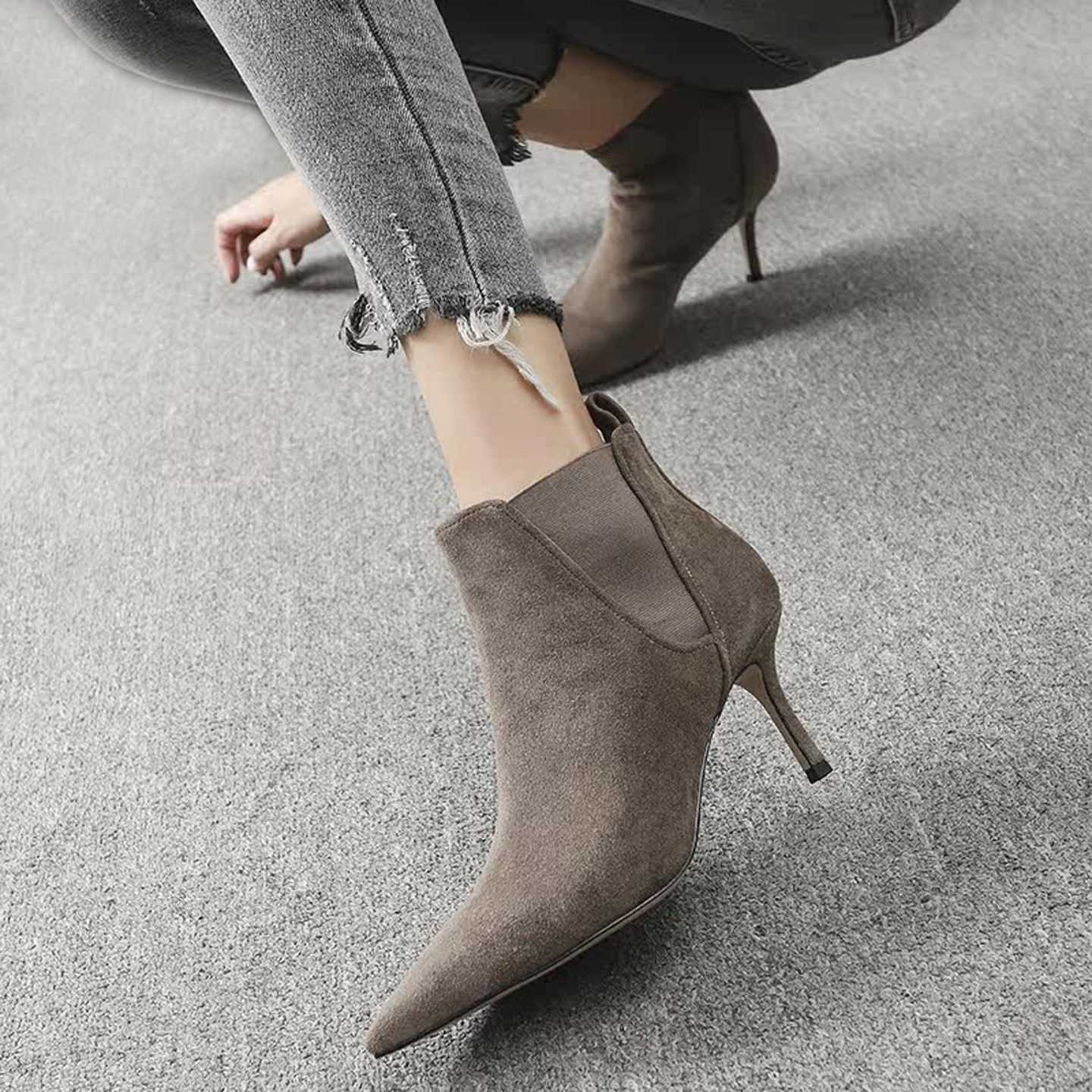 淘宝尖头细跟短靴女2025秋冬新款真皮加绒切尔西靴百搭高跟时装瘦瘦靴
