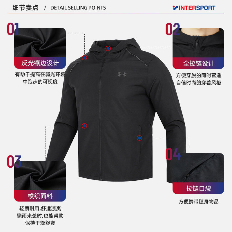 天猫UA安德玛外套男士春季新款运动服防风户外上衣登山软壳夹克男装薄
