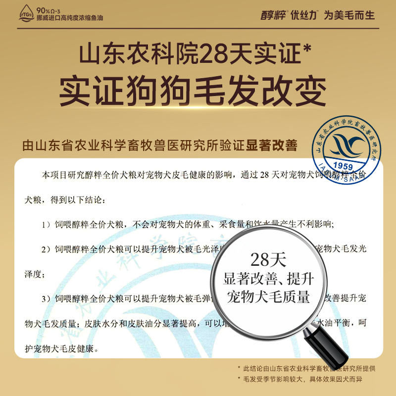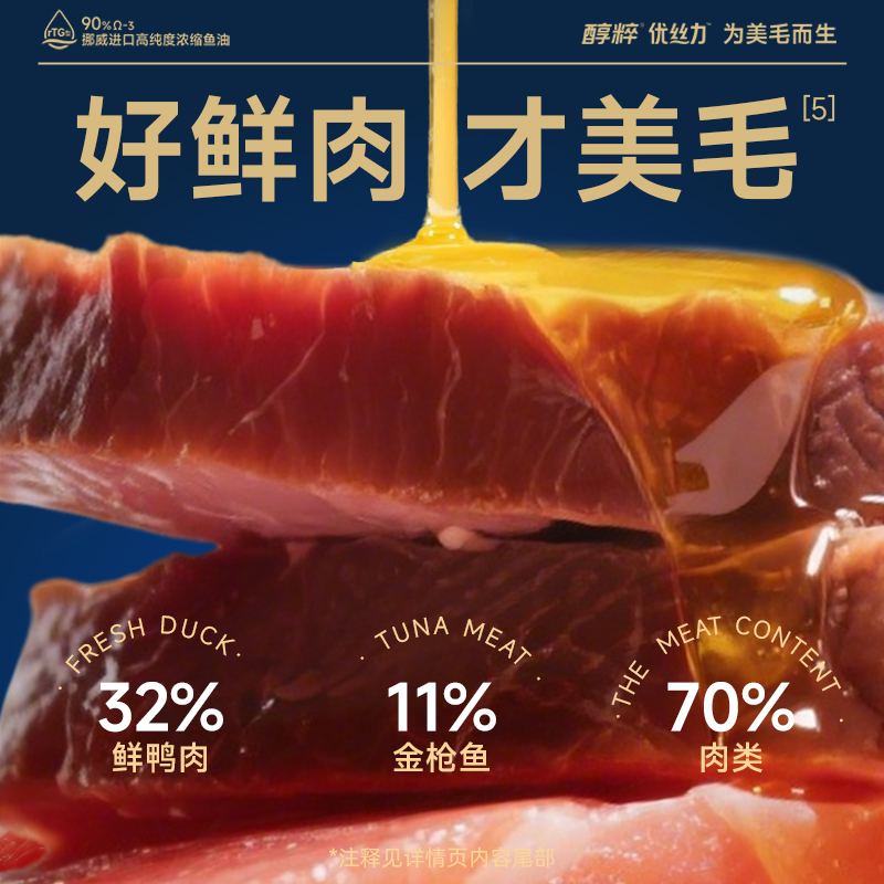 天猫醇粹优丝力鱼油狗粮鸭肉梨全价成幼犬通用型泰迪比熊金毛美毛全期