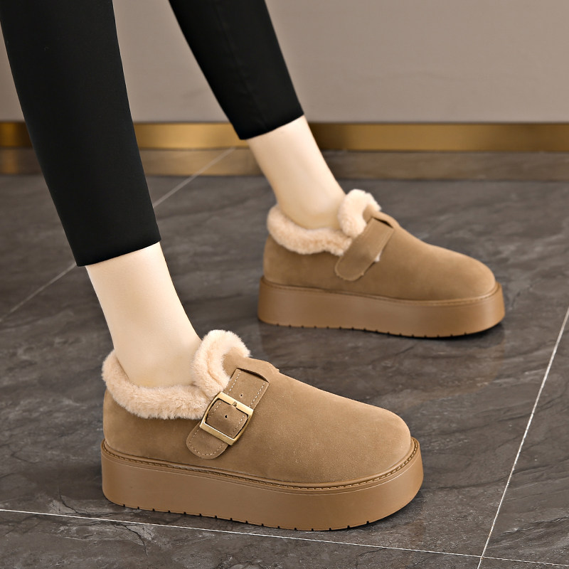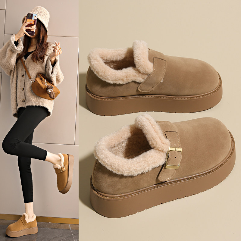 2025年冬季,厚底加绒豆豆博肯鞋女款强势登场,融合时尚与保暖双重理念。采用柔软亲肤的毛绒内里,全方位包裹双足,抵御严寒;加厚防滑橡胶大底,稳重耐穿,轻松应对雪地湿滑路面。经典豆豆鞋型搭配蓬松面包鞋设计,简约中透着慵懒时髦感,轻松搭配大衣、羽绒服或休闲裤。外穿即走,舒适不闷脚,是冬日街头的暖心之选。无论是通勤、逛街还是冬日旅行,这款毛毛雪地靴都能为你带来温暖与风格兼具的穿着体验,成为冬季鞋柜里的必备单品。