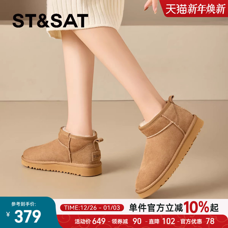 天猫星期六羊皮毛一体加绒加厚雪地靴2025年冬季新款保暖舒适棉鞋女鞋