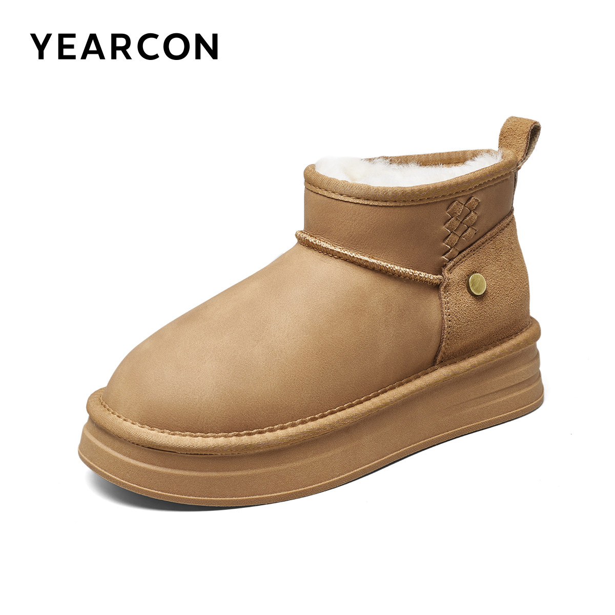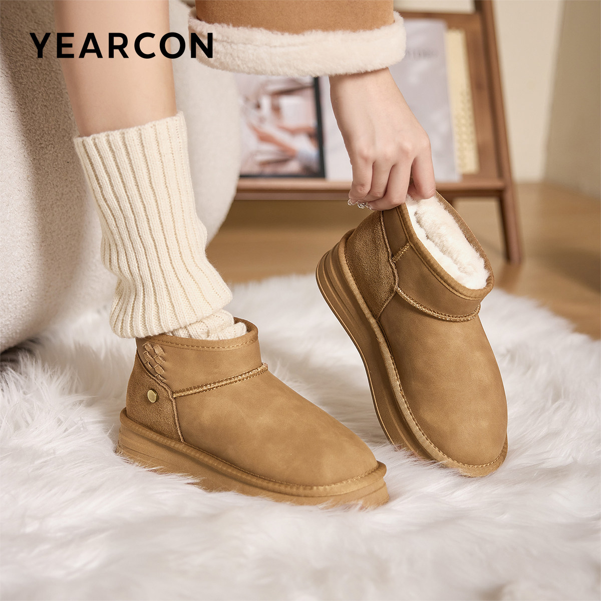 天猫意尔康女鞋冬季加绒保暖棉鞋平底短筒雪地靴休闲短靴女士