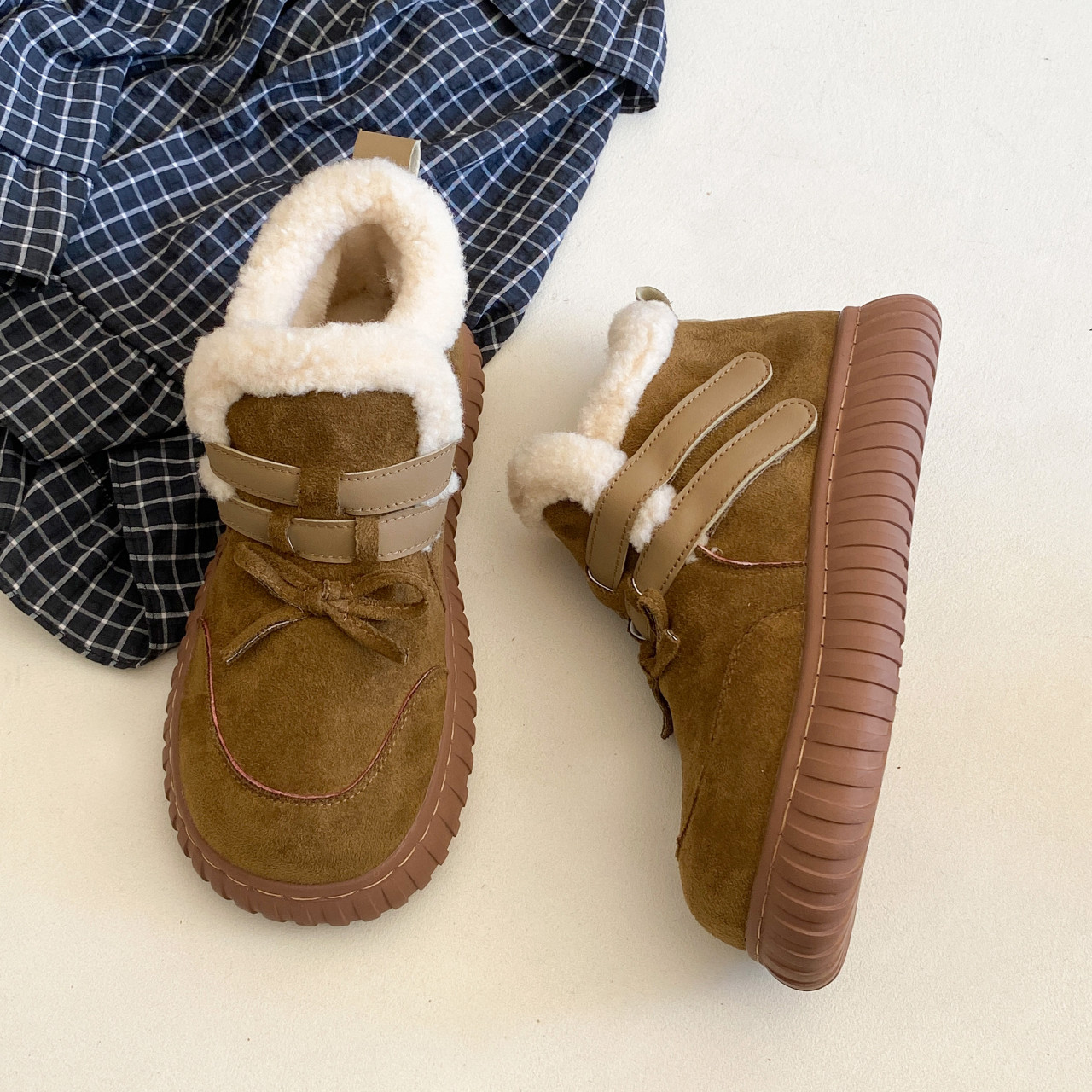 2025秋冬新款可爱圆头蝴蝶结加绒保暖雪地靴,专为追求温暖与时尚的女性设计。采用优质羊羔毛内里,柔软亲肤,锁温保暖,轻松应对寒冷天气。圆头设计舒适不挤脚,搭配甜美蝴蝶结装饰,复古又俏皮,增添少女感。鞋面精选耐磨面料,内里加绒厚实,防滑橡胶大底抓地力强,雨雪天行走更安心。无论是搭配大衣、羽绒服还是针织裙,都能轻松打造秋冬慵懒时髦范儿。轻盈耐穿,细节精致,是冬日出行的理想之选,温暖与颜值兼具,让你每一步都自信出彩。
