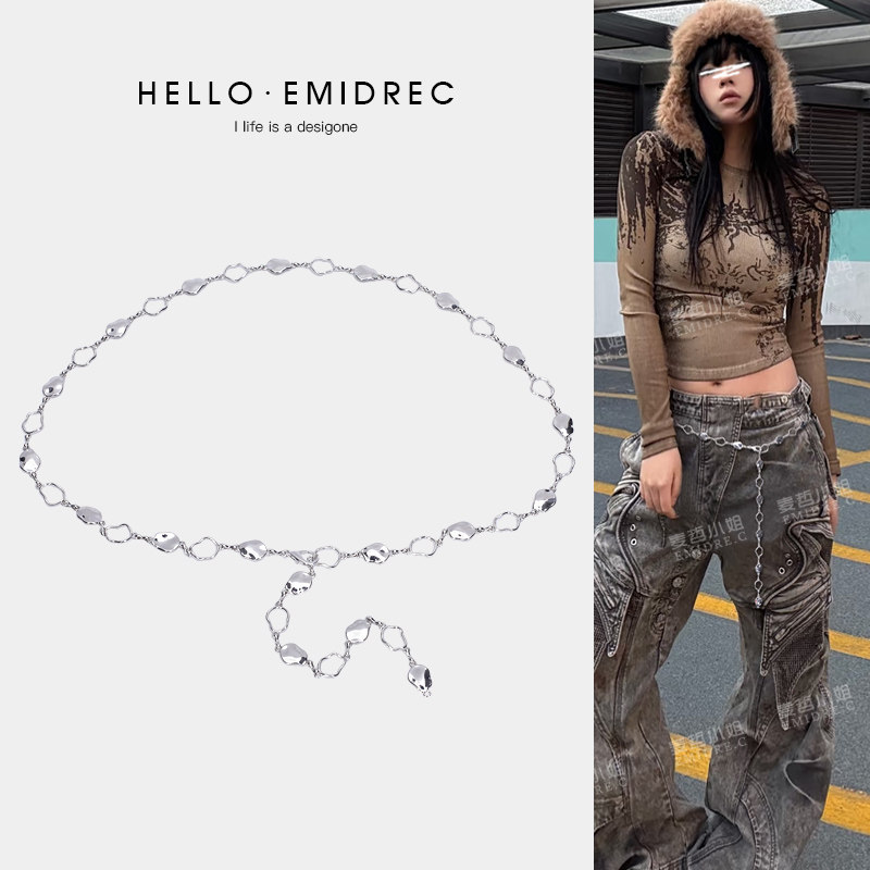 淘新款美式嘻哈风男裤链女小众设计腰链牛仔裤工装裤挂链钥匙链包挂