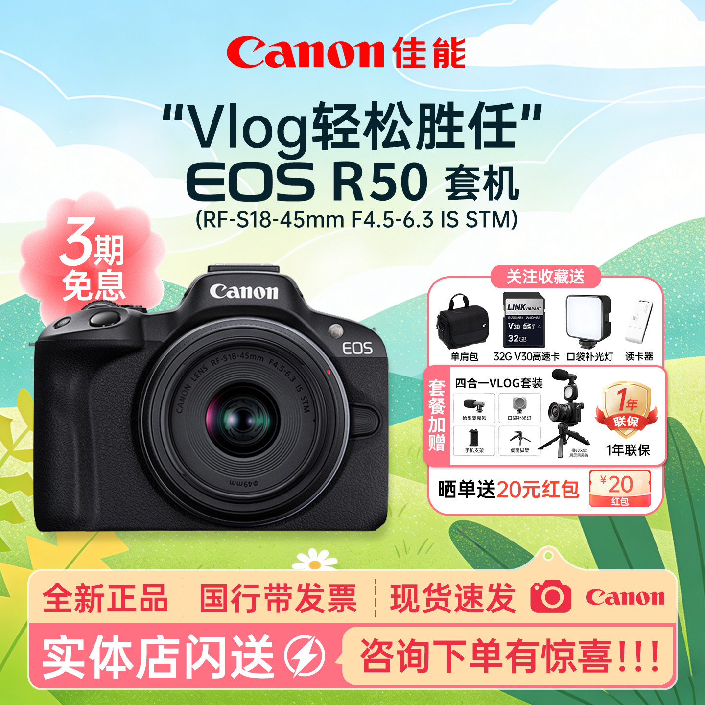 天猫【3期免息】佳能R50微单数码相机学生入门高清数码家用旅游vlog