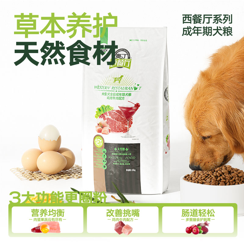 奥丁狗粮成犬通用型30斤边牧金毛萨摩耶拉布拉多成犬专用主粮15kg