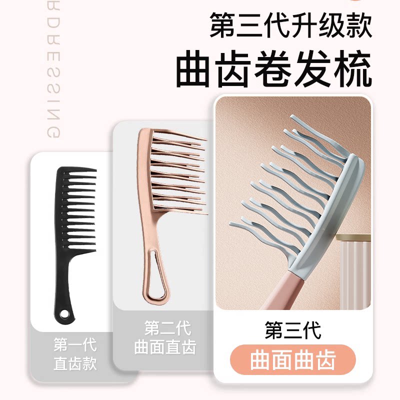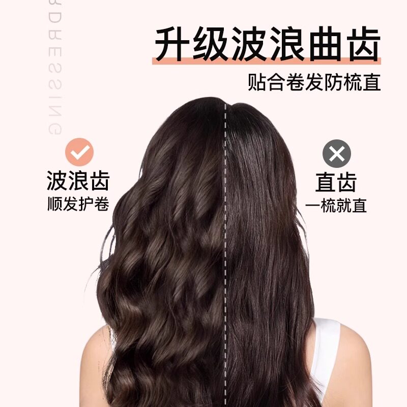 双排波浪齿大齿卷发梳,专为女士长发及烫发设计,采用宽齿双排波浪结构,轻松梳理打结秀发,减少拉扯断发。大齿距设计特别适合卷发、波浪发或烫后发质,能有效分散发丝张力,顺滑不卡发。梳齿圆润光滑,贴合头皮,按摩舒适,促进头部血液循环。材质精选抗静电材料,有效减少秋冬静电困扰,让秀发更服帖柔顺。无论是日常打理还是造型前预处理,都能轻松应对,是长发及烫发女性的理想护发工具,让梳理成为一种享受,呵护每一根发丝的健康与光泽。