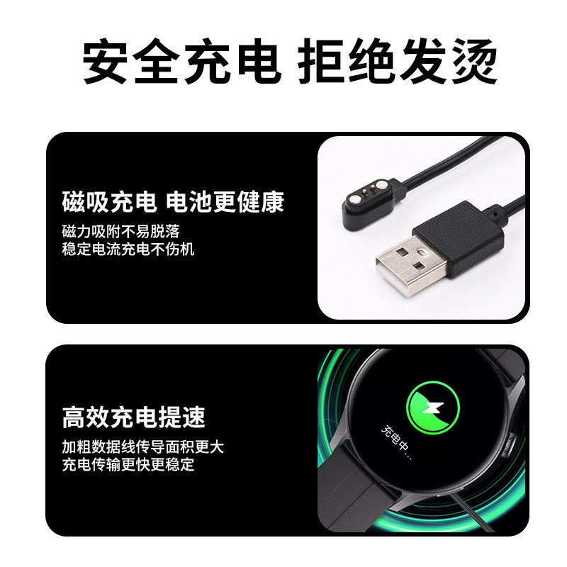 专为DIDO G28S Pro、2ero、E26S、E32S等智能运动手表设计的磁吸式充电线,采用精准磁吸对接技术,充电更便捷高效。兼容E8、E10、E59S、Y60等多款型号,同时适用于F12、F50替换配件,一缆多用,满足不同用户需求。高品质铜芯线材确保稳定电流传输,有效保护电池寿命。磁吸头设计牢固贴合,防脱落、防误触,充电过程安全无忧。轻巧便携,居家、办公、出行均可轻松携带。是原装充电器的理想替代选择,为您的DIDO智能手表提供持久可靠的续航支持。