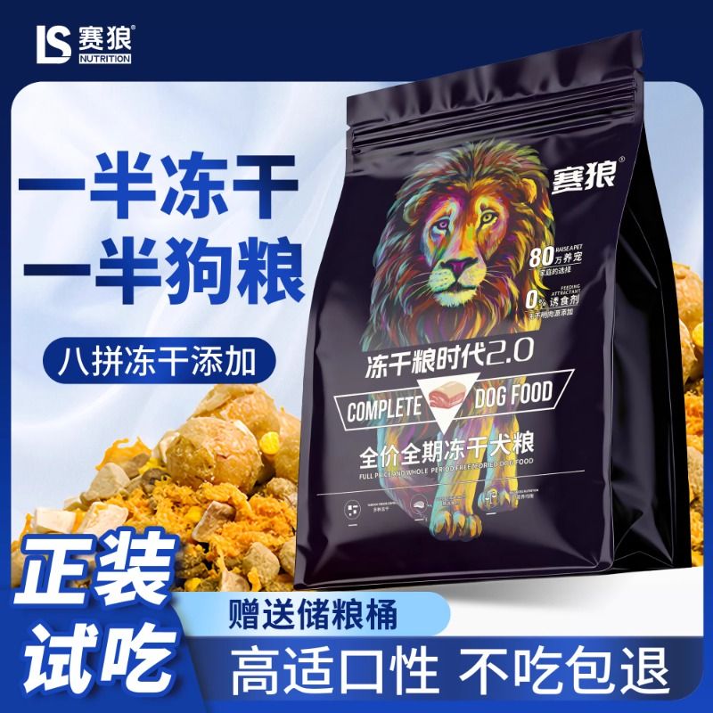 天猫赛狼冻干狗粮40斤无谷边牧金毛拉布拉多土狗德牧营养20kg幼犬全价