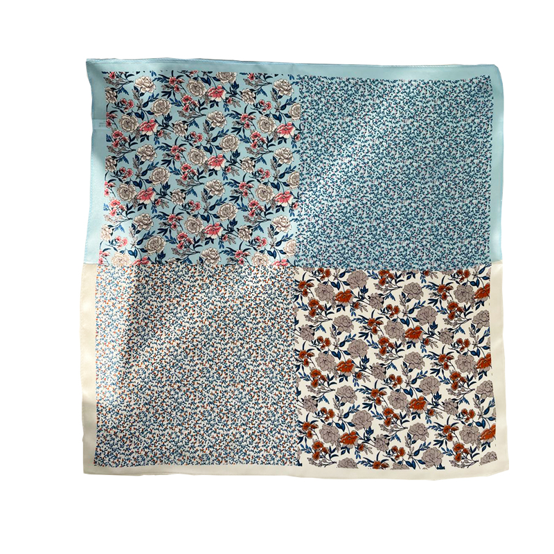 淘宝老记忆蓝色碎花/100%桑蚕丝衬衫丝巾发带女绑发夏薄款真丝小方巾