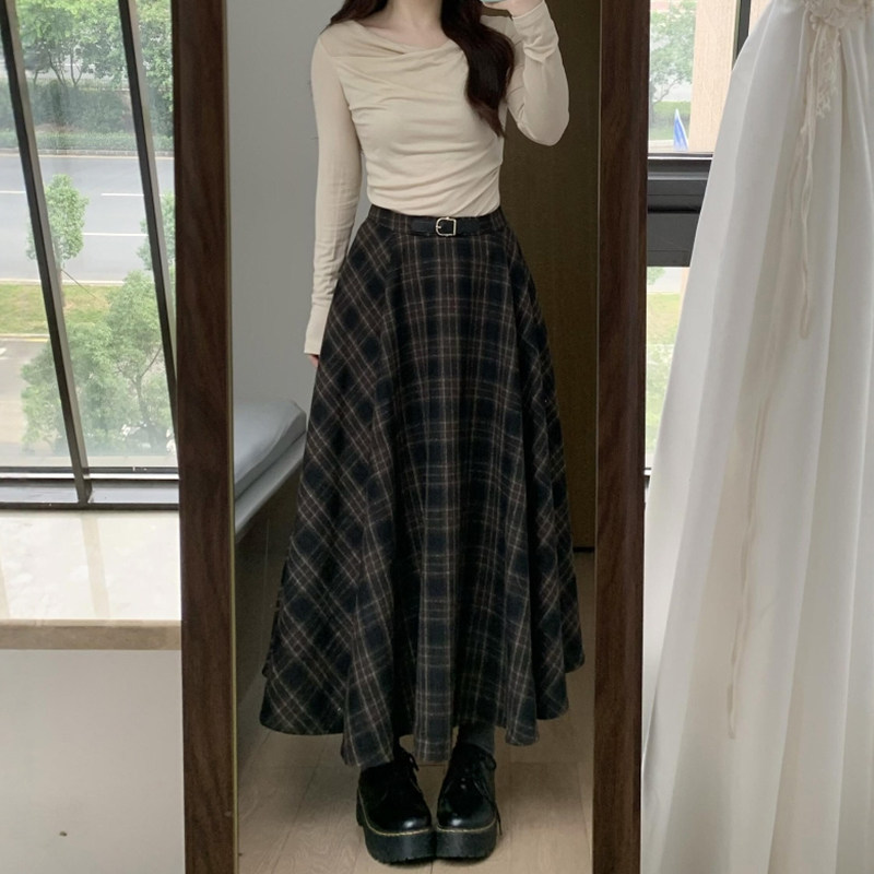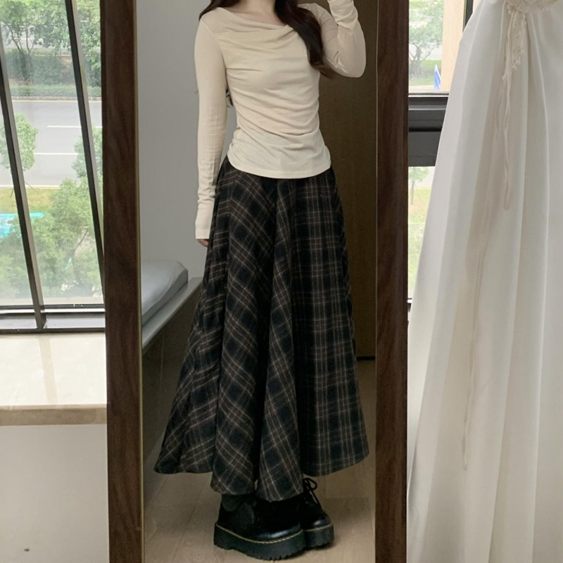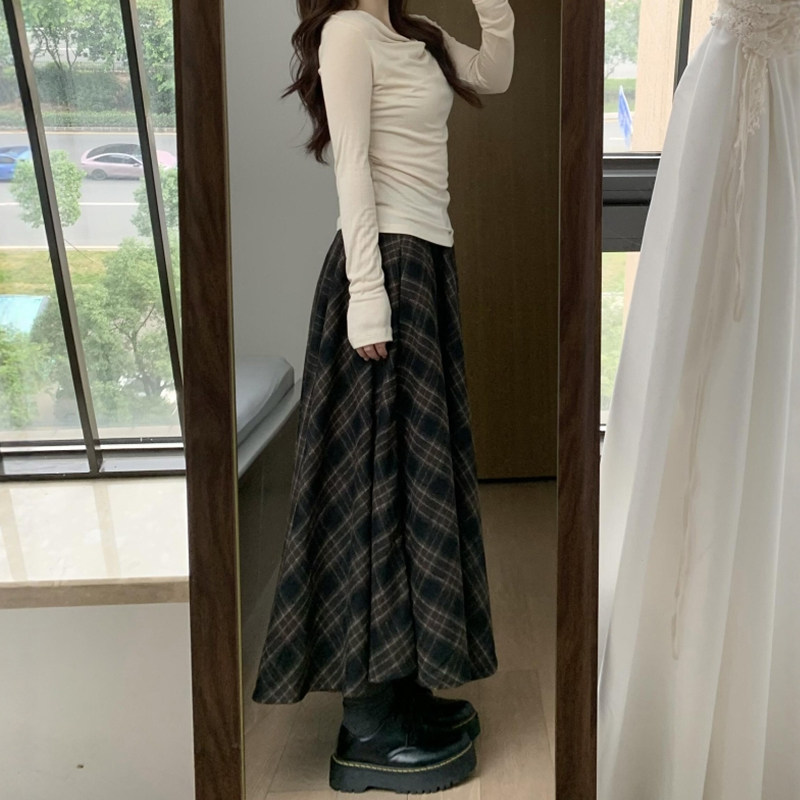 淘宝超好看冬装半身裙棕色美拉德格子半裙大码女装长款a字伯克利伞裙
