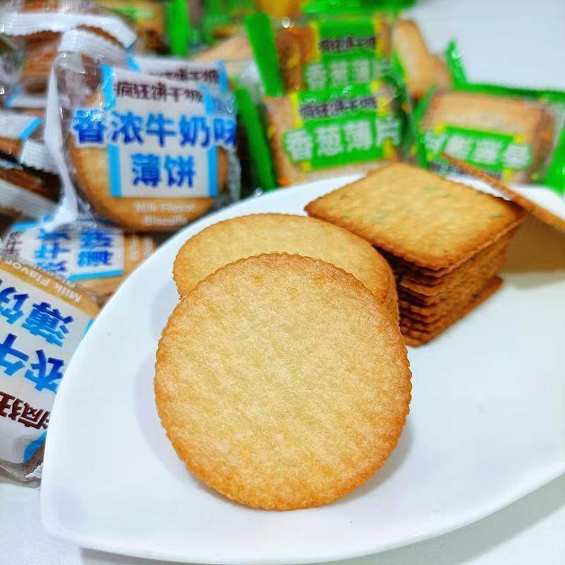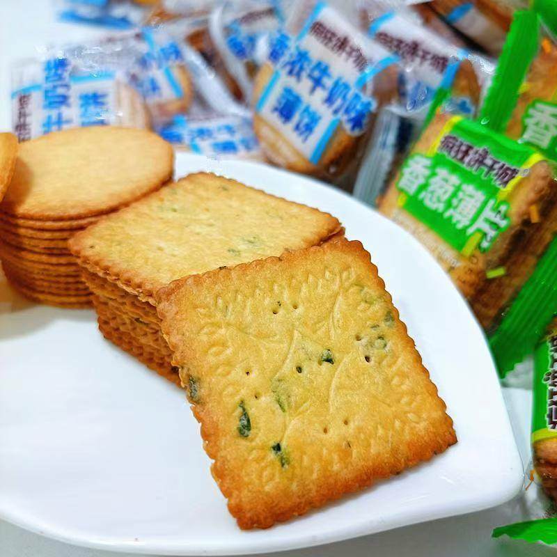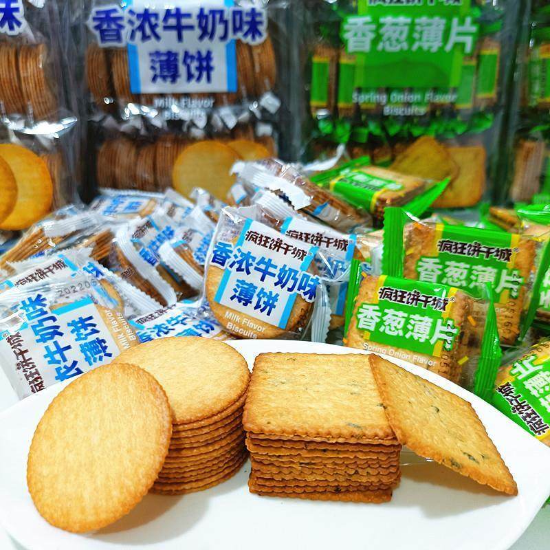 淘宝伟龙疯狂饼干城香葱薄片388g袋装牛奶味薄脆饼干办公室休闲小零食