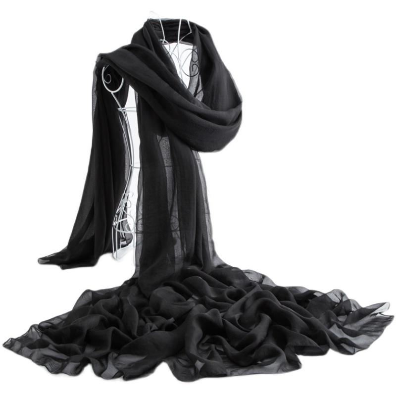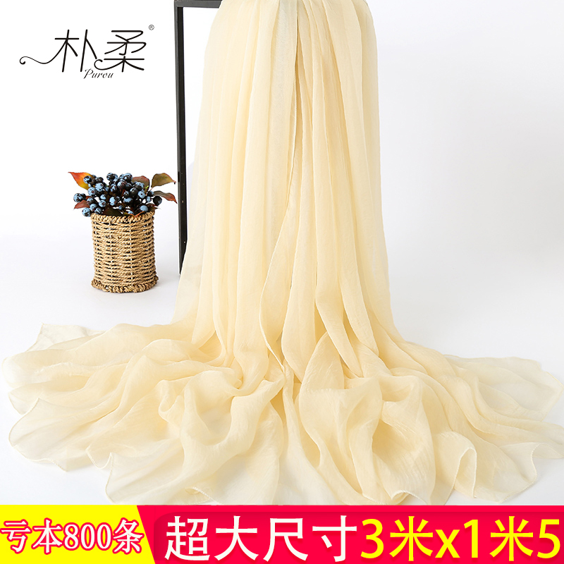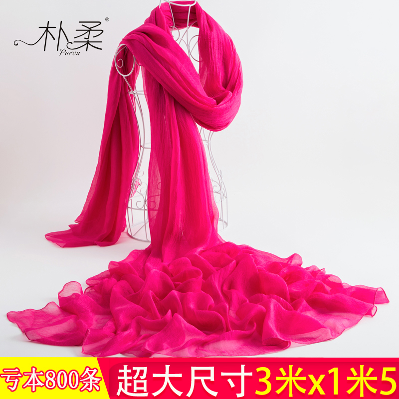 淘宝黑色丝巾女超大3米围巾春秋薄款纱巾大红长款海边沙滩巾防晒披肩