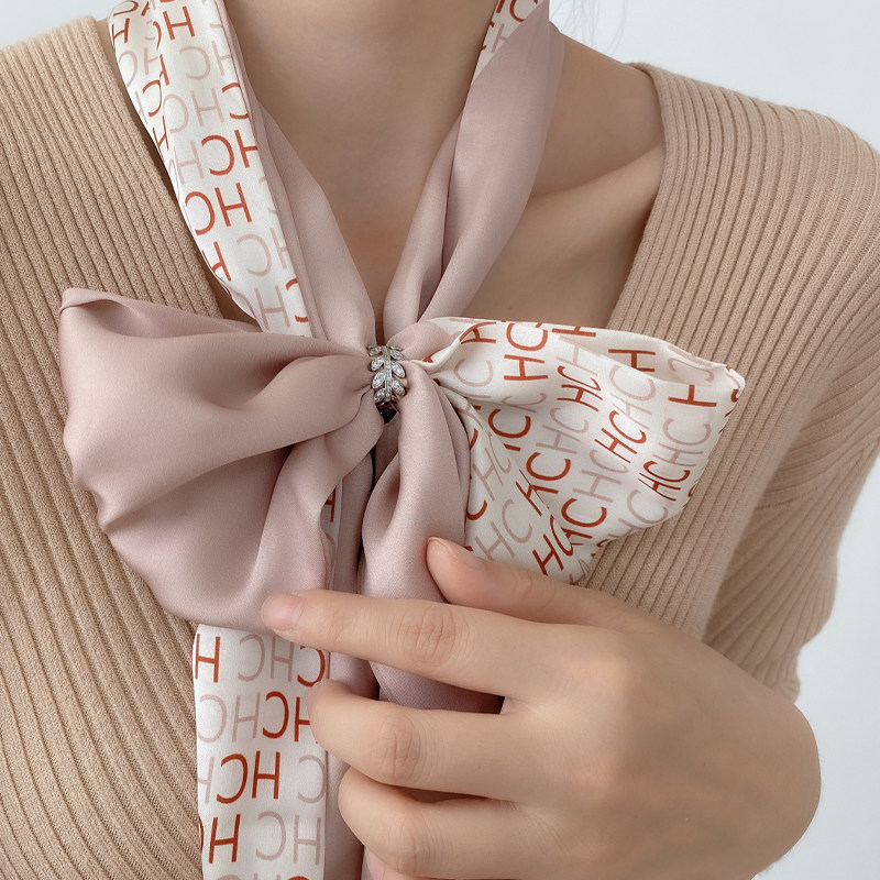 淘丝巾2024新款ins腰果花飘带女百搭装饰领巾绑包扎发长条双面领巾